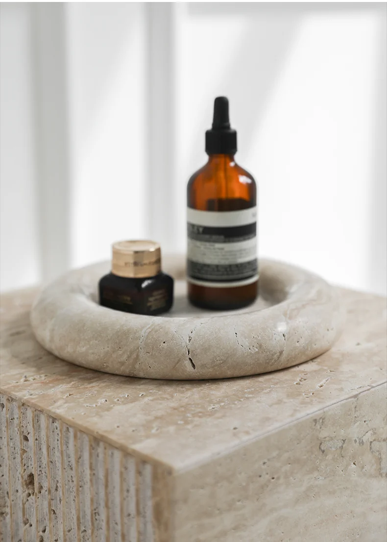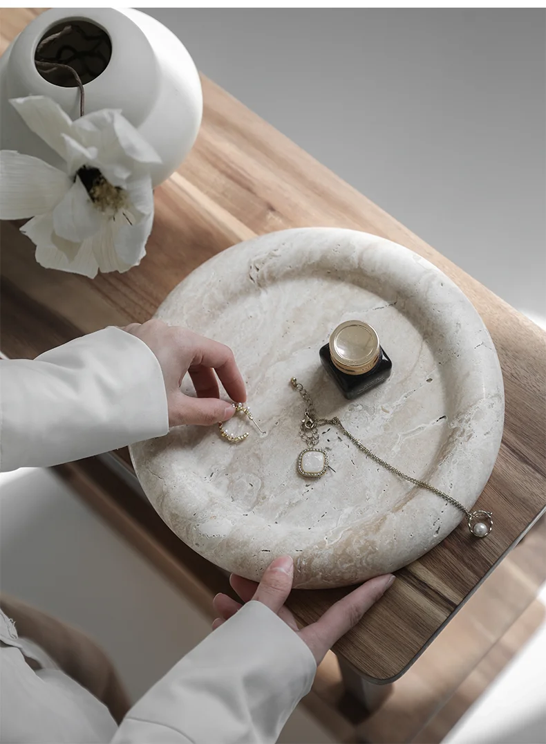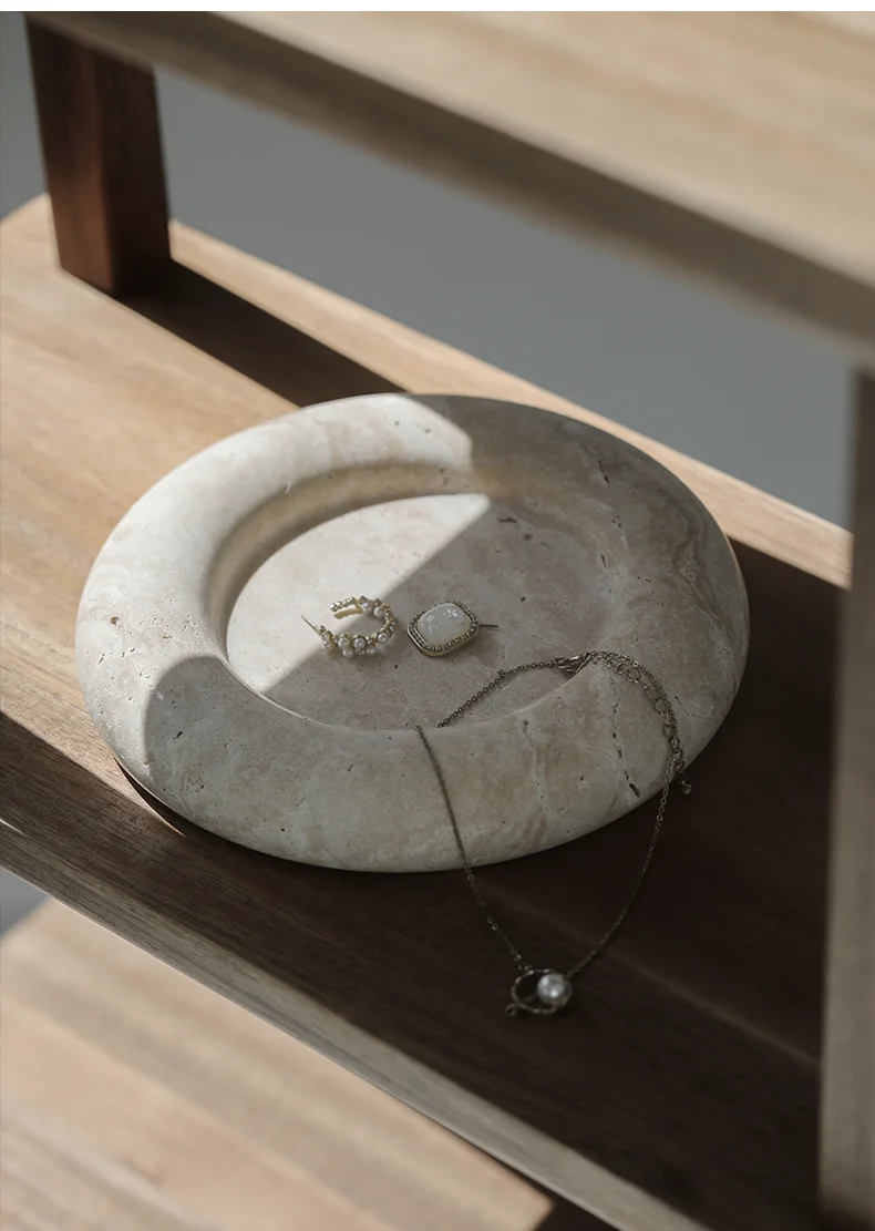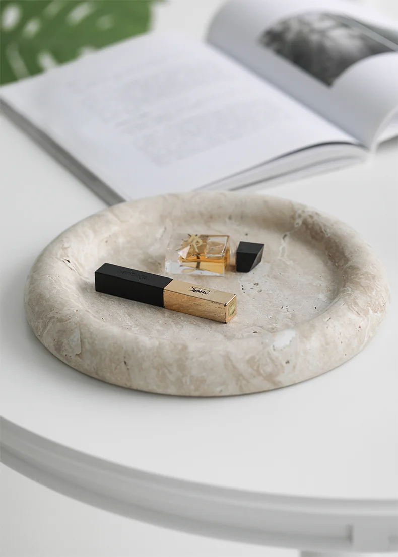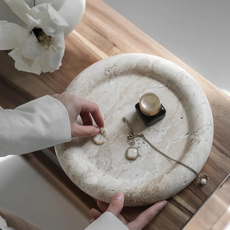 Beige Travertine Stone Bedside Jewelry Tray Plate