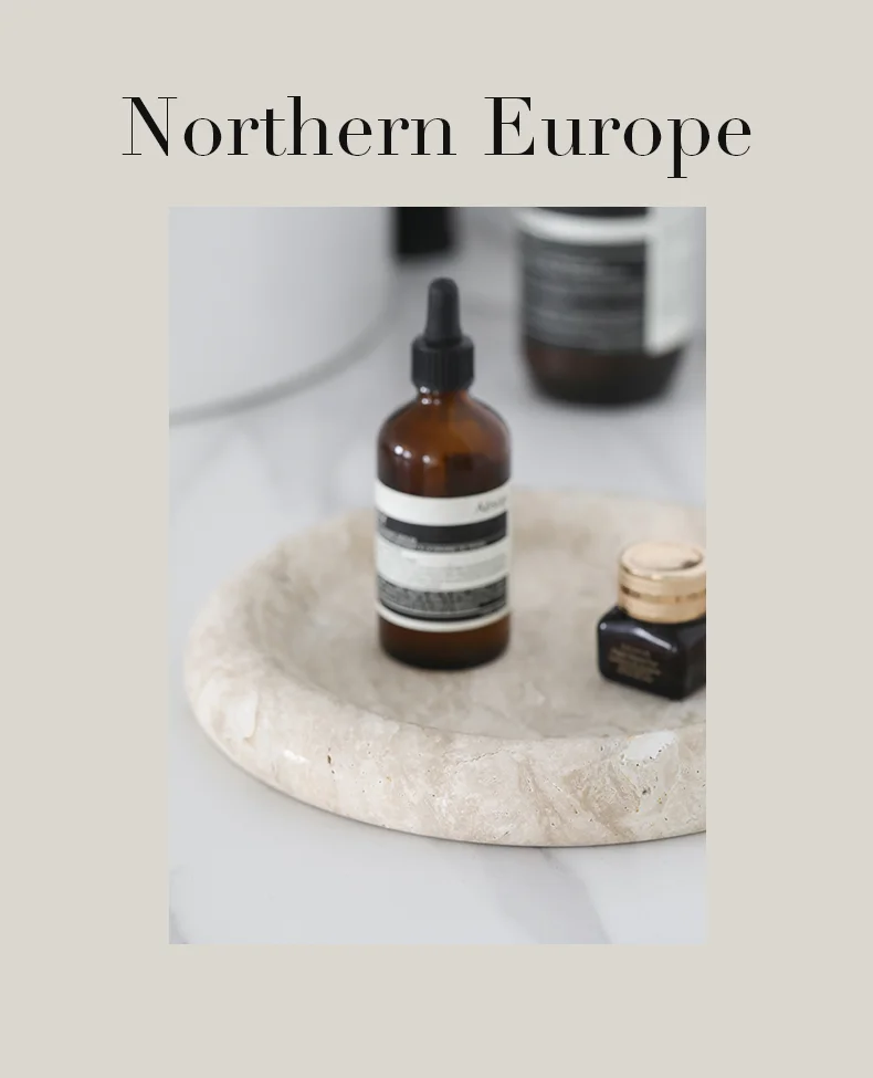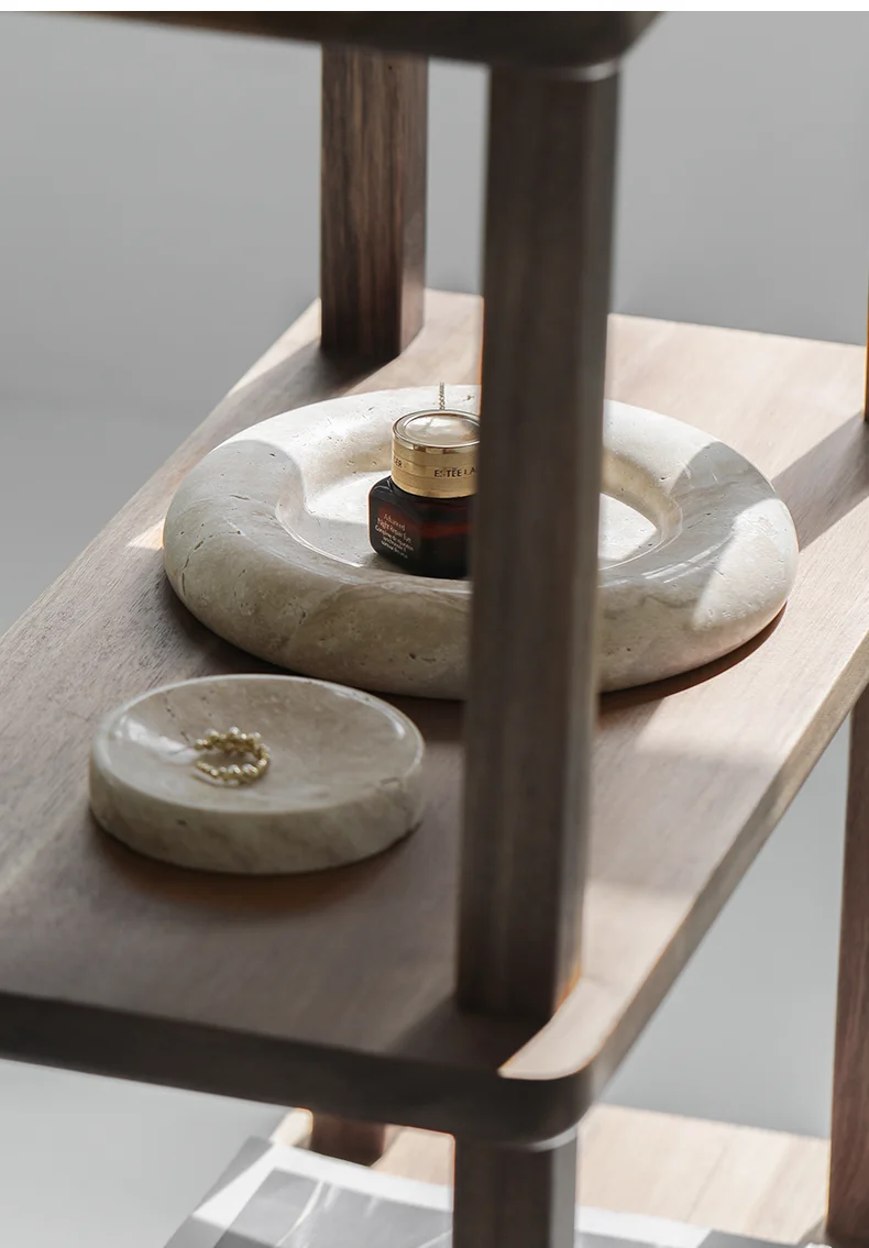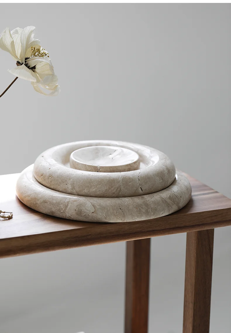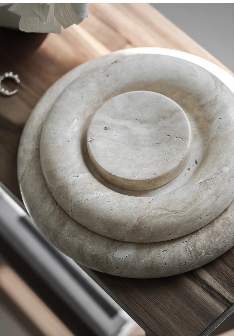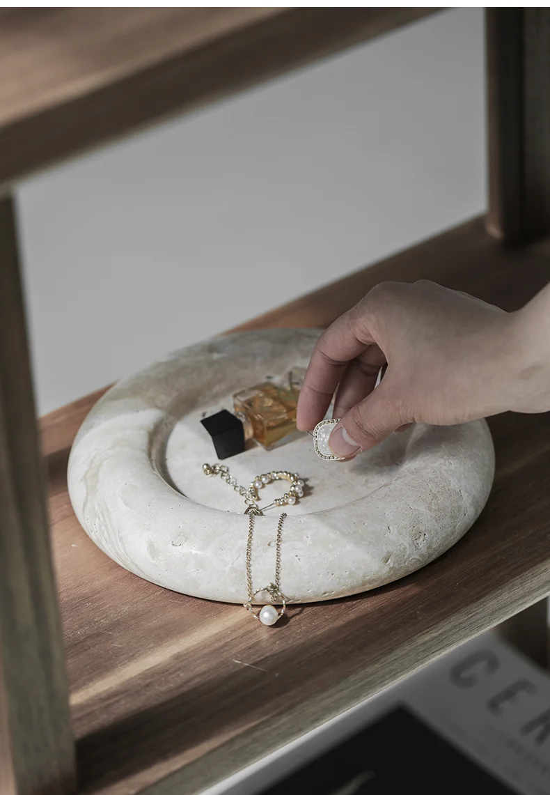 Beige Travertine Stone Bedside Jewelry Tray Plate