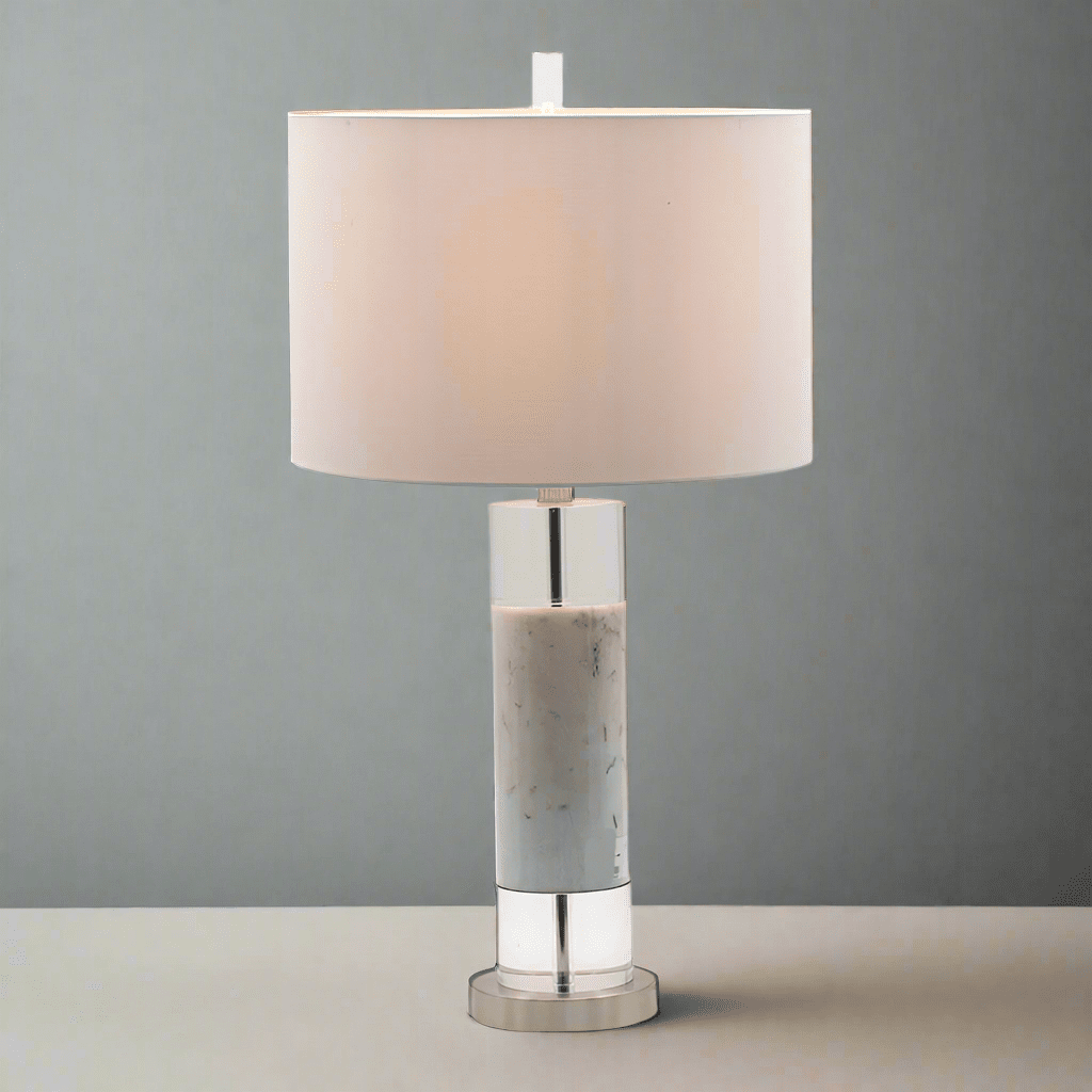 Cylindrical Marble & Acrylic White Drum Lamp