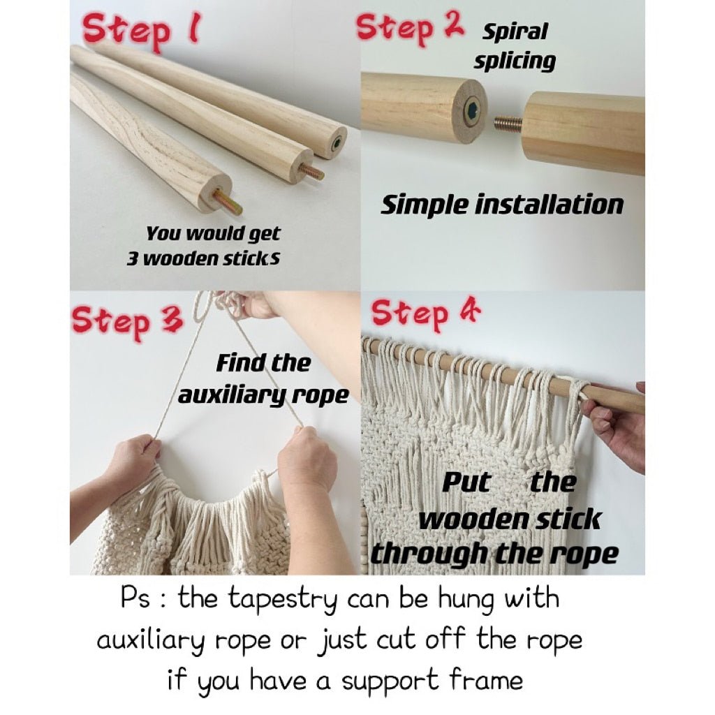 Draped Macrame Handwoven Bohemian Cotton Tapestry - Includes Stick