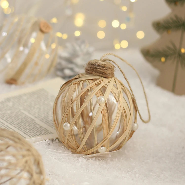 Jute & Straw Rustic Clear Ball Ornaments - Set of 6