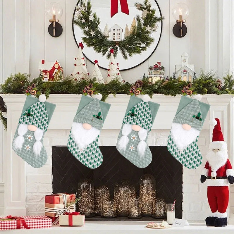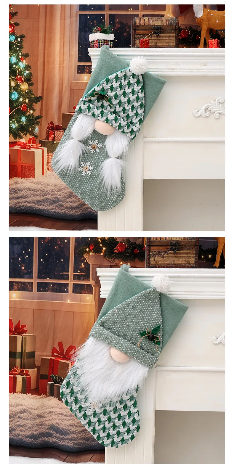 Spread holiday cheer with our charming, knitted Christmas gift stockings featuring festive tree pendants. Perfect for stocking stuffers or small gifts, these cozy socks arrive in an elegant green bag that doubles as festive packaging. Ideal for candy, treats, or as standalone presents, they combine comfort with seasonal style. Whether you're decorating your tree, filling stockings, or giving thoughtful gifts, these knitted treasures add warmth and joy to your holiday celebrations. Make this season memorable with a gift that's both practical and delightfully festive.