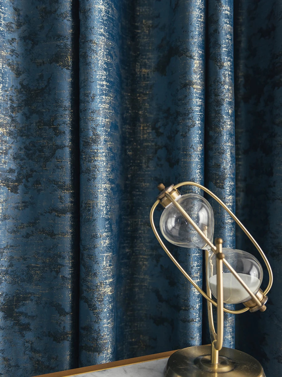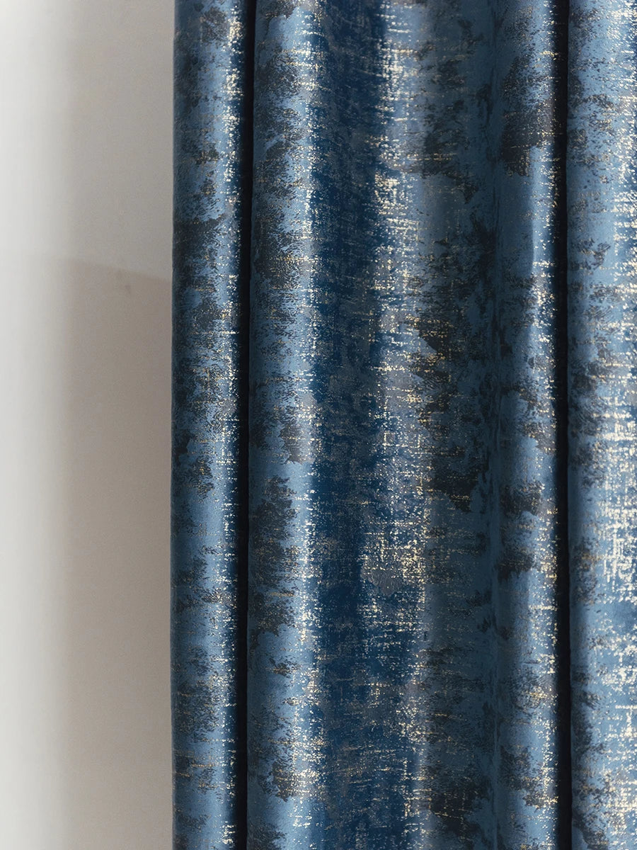 Luxury Bronzed Dark Blue Modern Shiny Window Curtains