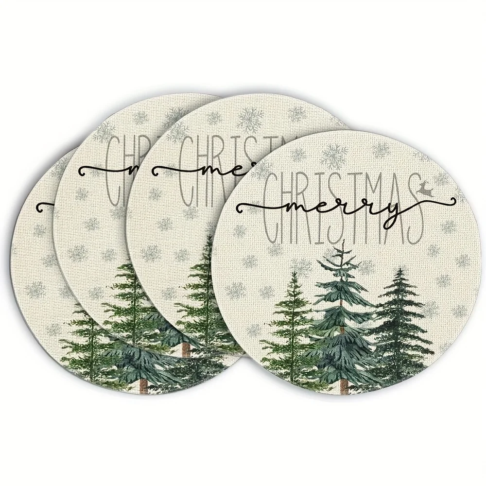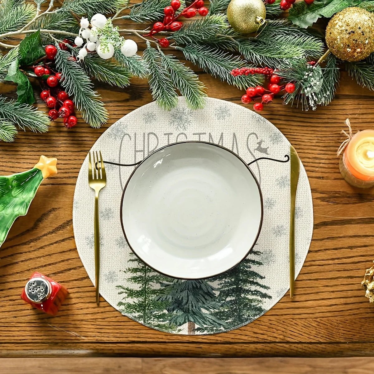 Merry Christmas Pine Tree Round Placemats - Set of 4