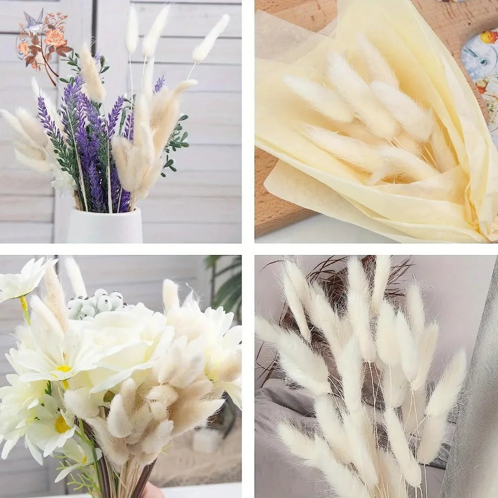 Transform any space into a tranquil sanctuary with our 60Pcs Fluffy Bunny Tail Pampas Grass Bouquet. Handpicked and crafted with all-natural materials, each fluffy bouquet is unique and full of character. Embrace the delicate and precious beauty of our eternal flowers, which may lose some fluff during their journey to you - a normal occurrence that can be easily trimmed. Please note that due to monitor differences, the actual color may vary.