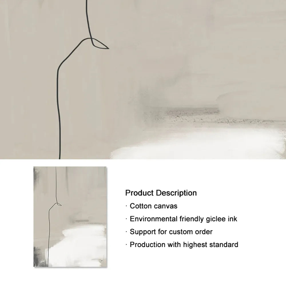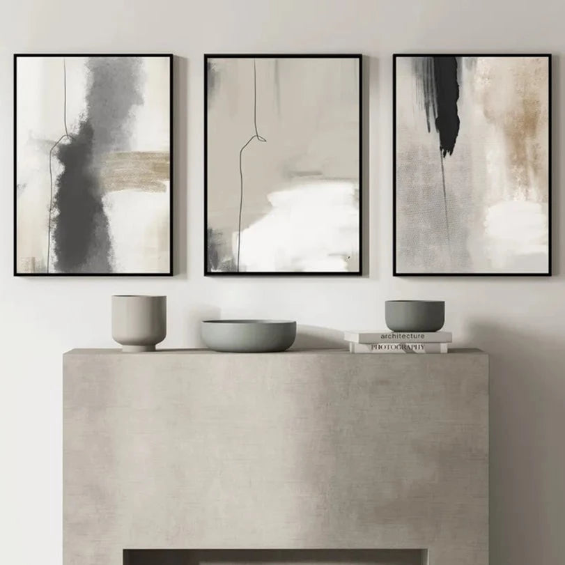 Neutral Beige & Black Abstract Lines Combination Canvas Wall Art