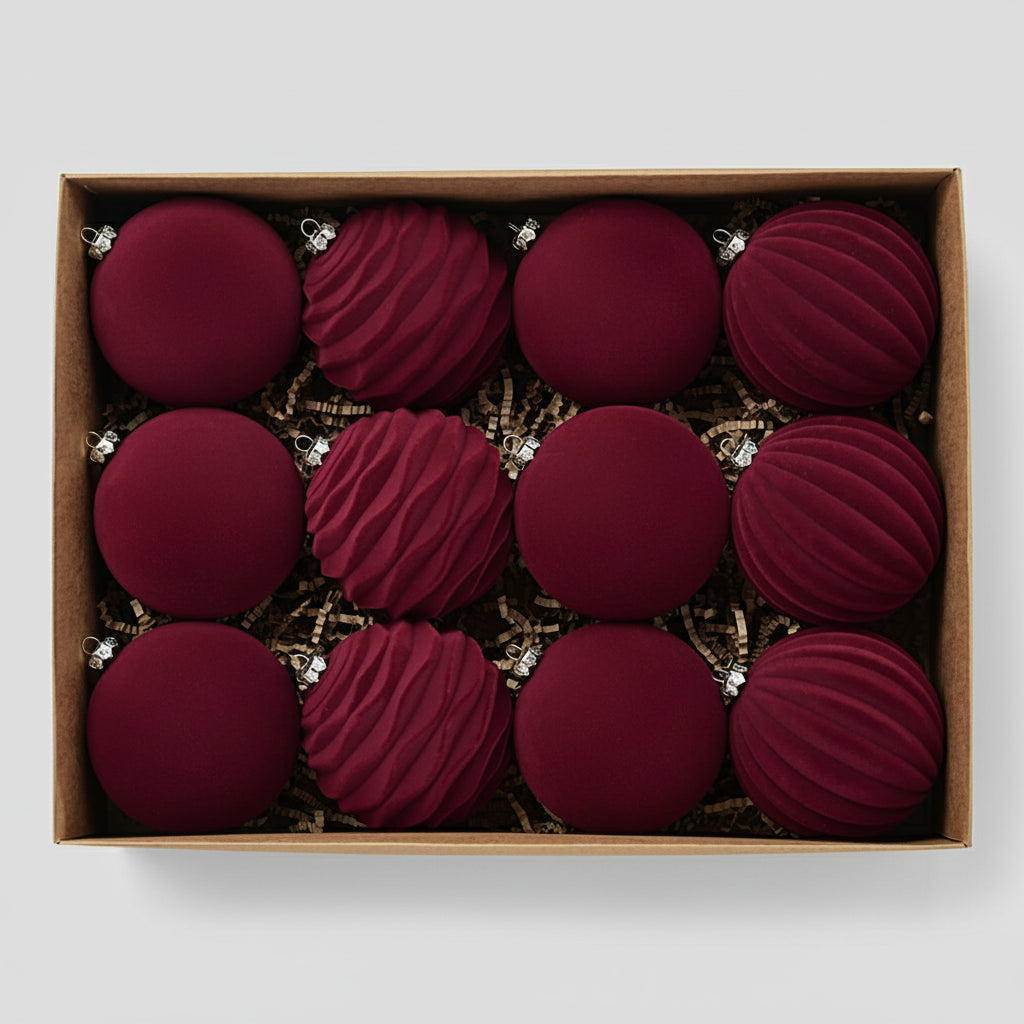 Elevate your holiday décor with this stunning set of 12 velvet Christmas ornaments in rich red and green hues. Crafted from durable PS plastic with a luxuriously soft velvet finish, these 8cm baubles resist fading and breakage for years of festive enjoyment. Each ornament features a convenient hanging loop for effortless tree placement. The compact design stores easily between seasons, while the elegant gift packaging makes these ornaments an ideal present for loved ones. Transform your Christmas tree into a warm, inviting centerpiece that captures the magic of the season and creates cherished memories with family and friends.