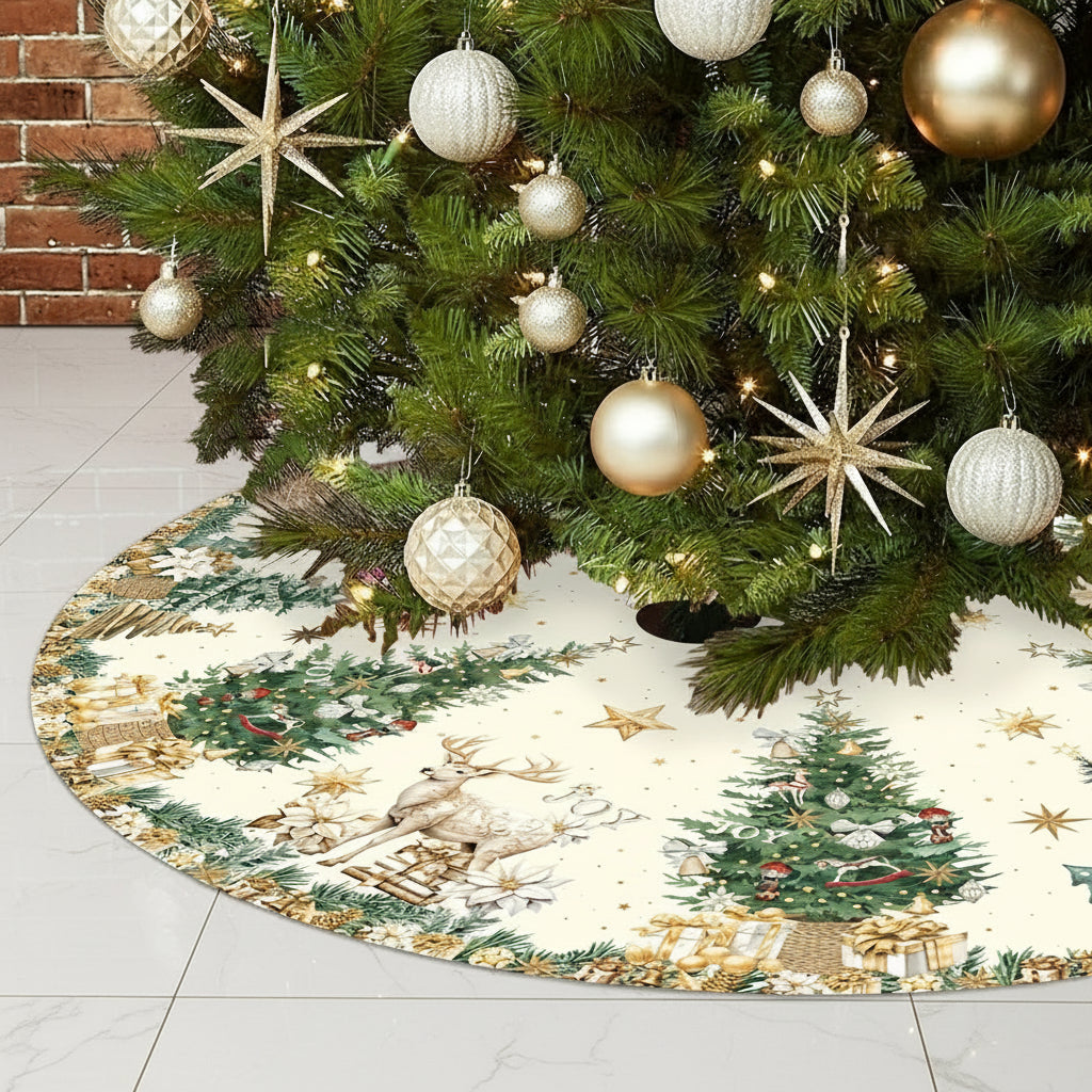 Transform your holiday décor with this charming Christmas tree skirt featuring a festive reindeer design. Perfect for creating that warm, welcoming atmosphere in your living room, this merry-themed piece brings traditional holiday spirit to any space. The cheerful reindeer motif adds character and nostalgia to your Christmas setup, making it an ideal choice for those who love classic seasonal celebrations. Whether you're hosting a holiday party or simply want to elevate your home's festive appeal, this tree skirt serves as both a practical floor protector and a stunning decorative accent. Embrace the magic of the season with this essential holiday essential that guests will admire.