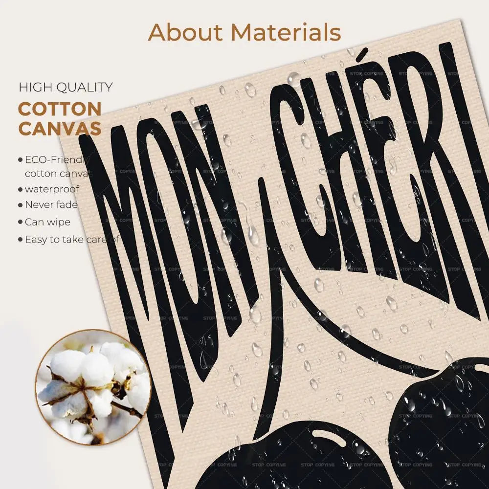 Retro Cherry "Mon Cheri" French Quotes Canvas Wall Art Print