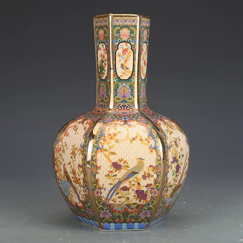 Immerse yourself in the beauty and sophistication of our Traditional Porcelain Antiqued Handcrafted Krater Vase. Crafted with care in Vietnam and adorned with stunning gold accents, this vase radiates elegance and timelessness. Measuring 23cm high and 15cm wide, it serves as a stunning centerpiece for any space. With its one-of-a-kind krater design, it's a must-have for collectors and adds a touch of uniqueness to your home decor. Transform your space with this decorative piece inspired by traditional Chinese style.