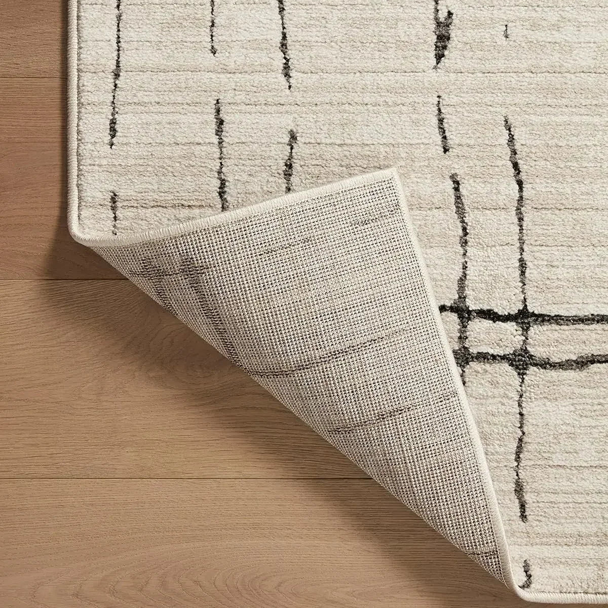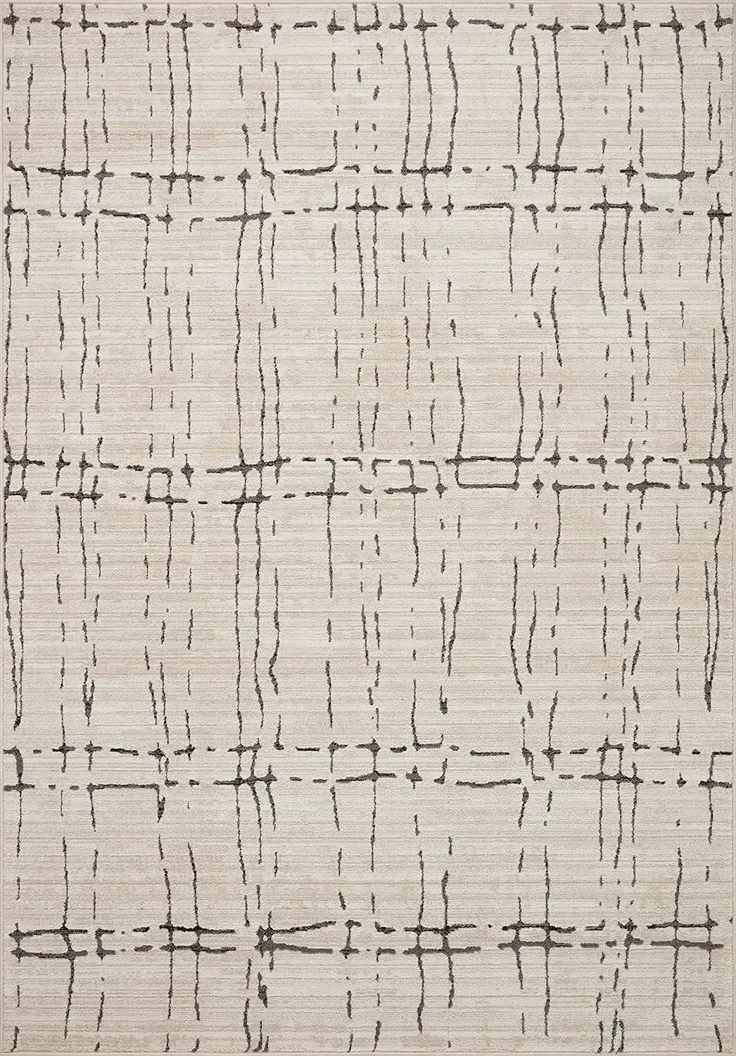 Sand & Grey Low Pile Line Pattern Area Rug 8x10