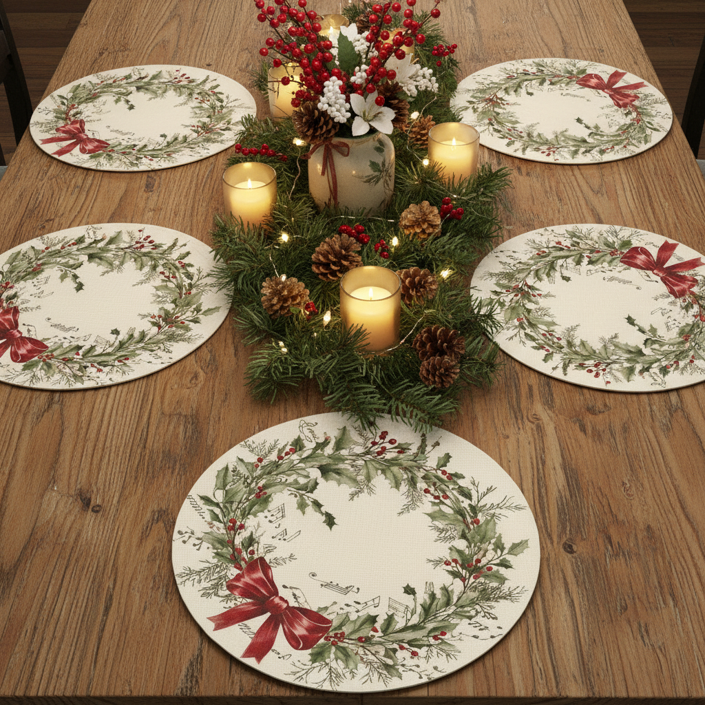 Transform your holiday table into a festive showcase with this stunning 4-piece Christmas Holly Berry placemat set. Each placemat combines practical performance with seasonal charm, featuring a resilient design that resists fading and heat while maintaining its vibrant appearance wash after wash. The non-slip backing keeps everything securely in place during family dinners and celebrations, while the one-sided printed design showcases beautiful holly berry artwork. Machine wash in cold water for effortless maintenance—no ironing needed. Perfect for creating memorable gatherings or as a thoughtful gift for loved ones during the holidays.