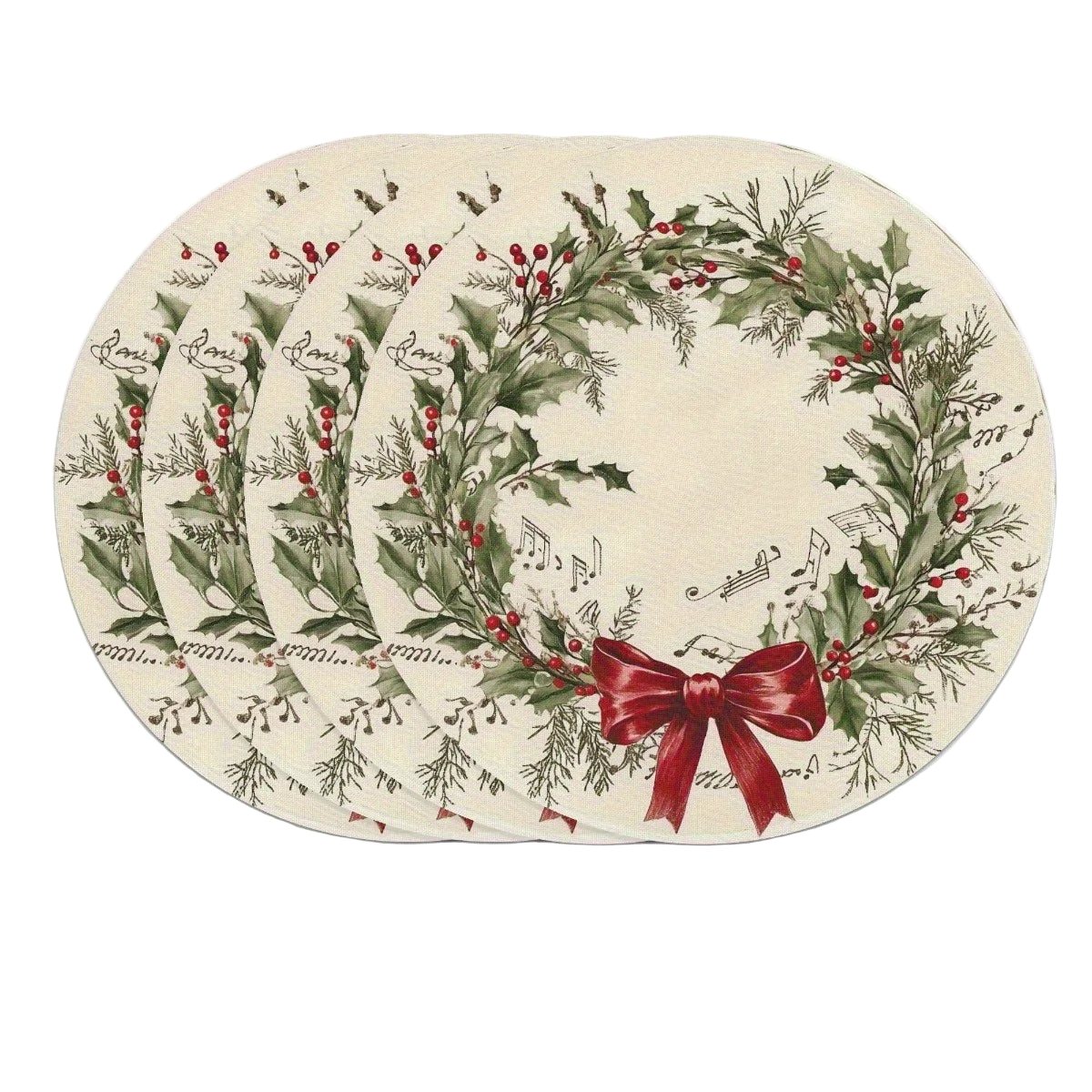 Christmas Holly Wreath Holiday Placemats - Set of 4