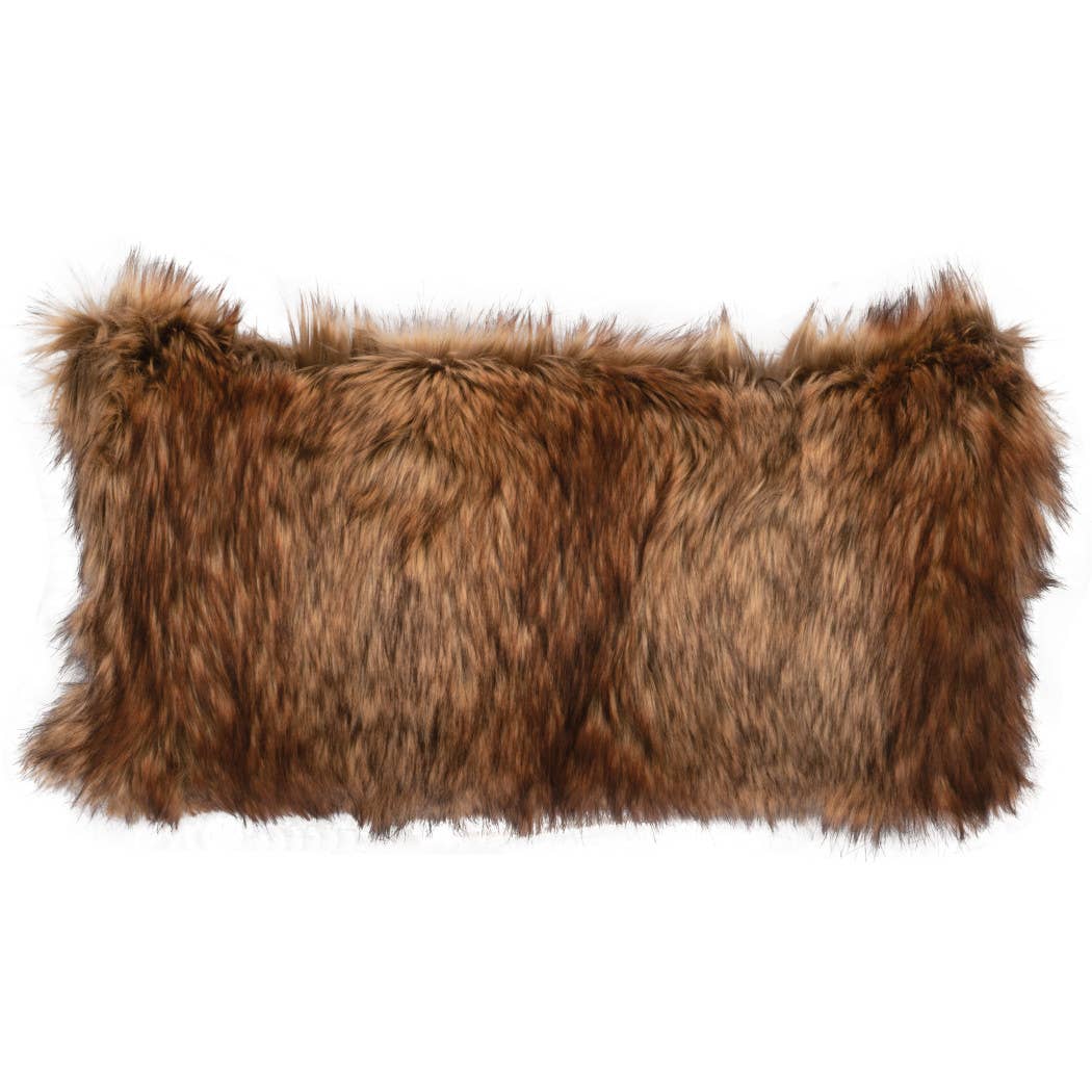 Grand oreiller complet industriel rustique en fausse fourrure de loup -14x26
