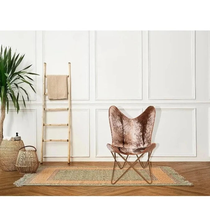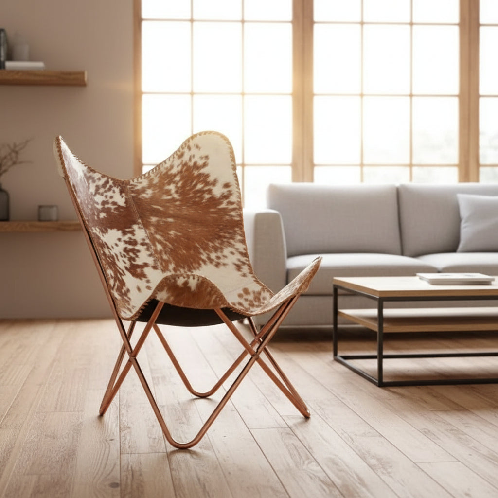This elegant Butterfly Chair, with its gracefully curved backrest and seat, provides supreme support and unmatched comfort. Crafted with ergonomics in mind, the chair's authentic goat leather material encourages relaxation following a hectic day. The classic butterfly silhouette lends a charming appeal to any interior design. Its robust powder-coated iron frame offers stability and endurance, while the genuine leather assures enduring quality. Elevate your decor with this chic vintage butterfly chair.