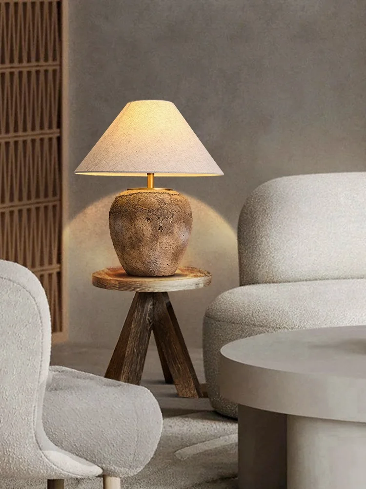 Lampe de table texturée nordique ronde en céramique Wabi Sabi rustique