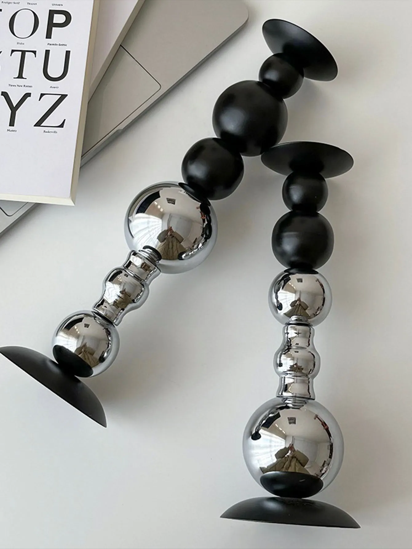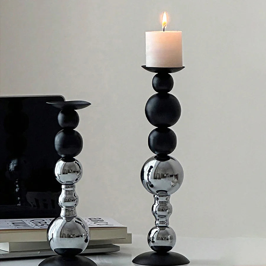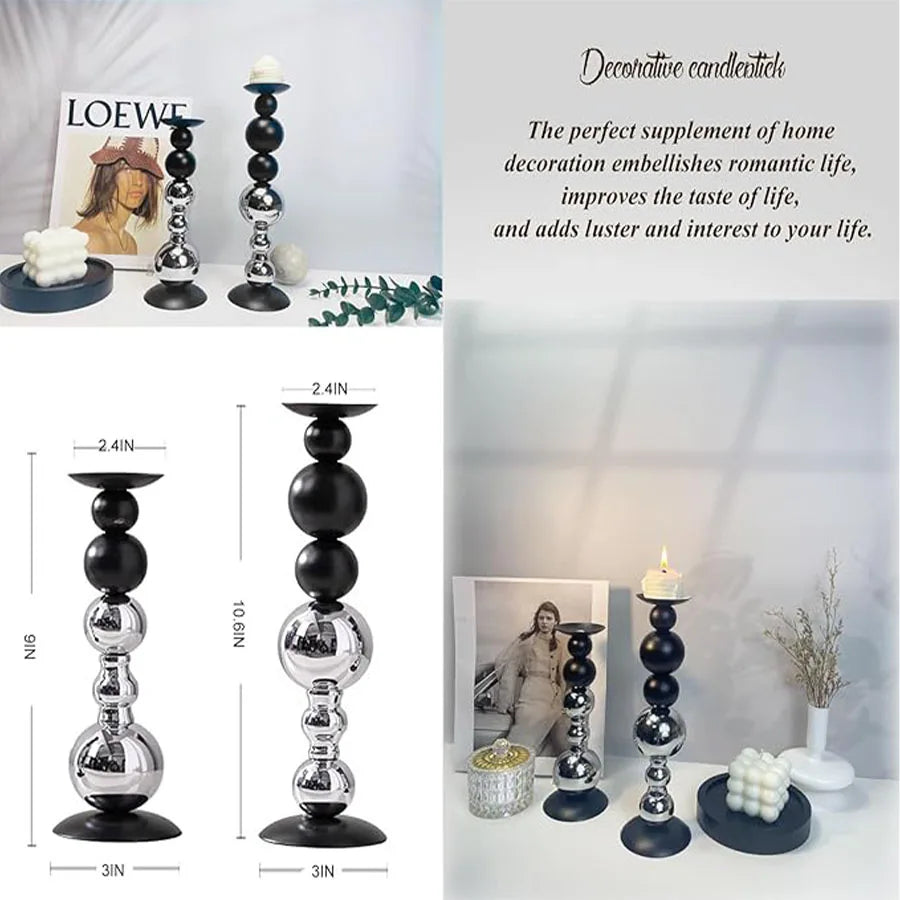 Silver & Black Set of 2 Modern Tall Candle Holders
