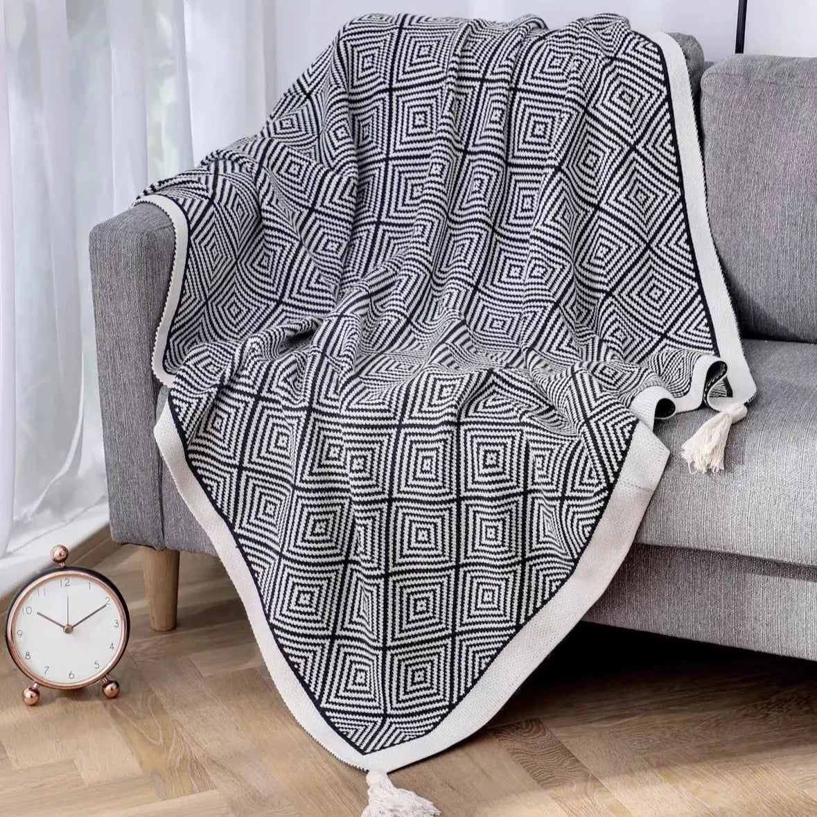 Tasseled Nordic Style Geometric Print Sofa Throw Blanket