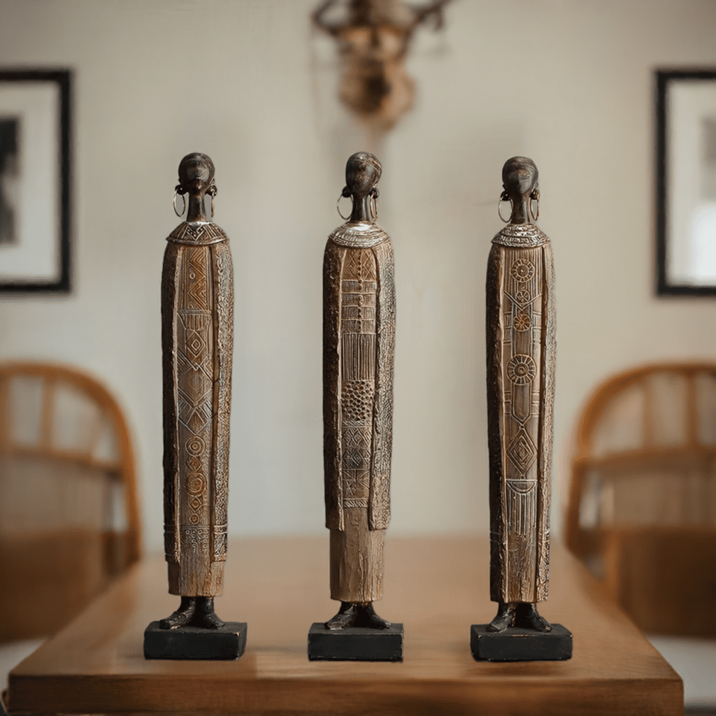 Transform your home into an oasis of bohemian charm with our Tribal Statues. These exquisite African-inspired sculptures add a touch of rustic elegance to any space. Standing tall at 37cm, they make the perfect statement piece for your wine cabinet or any room in your home. Elevate your decor to the next level with these unique tribal decorations. Offered individually, or 2pc set.