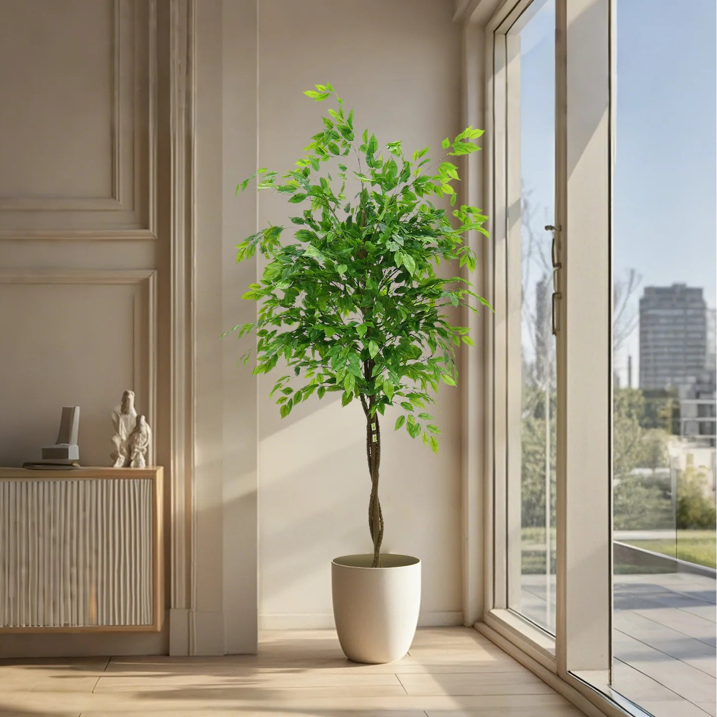 Bring timeless greenery into your space with this stunning 5.9' Artificial Braided Stem Ficus Tree. Featuring a sophisticated braided trunk design and lush, realistic foliage, this plant delivers the elegance of a living ficus without the maintenance demands. Perfect for brightening corners, entryways, or office spaces, it maintains its vibrant appearance year-round—no watering, pruning, or sunlight required. Ideal for busy professionals and plant lovers seeking lasting beauty with zero upkeep. Transform any room into a naturally inspired sanctuary.