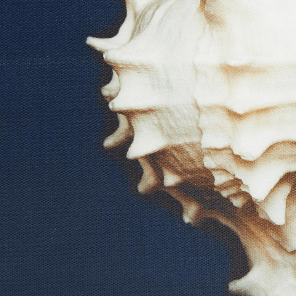 The Madison Park Ocean Seashells 4-piece Framed Canvas Wall Art Set by Artist Julie Greenwood adds a dynamic coastal update to any room in your home. This four piece canvas wall art set shows different realistic seashells against a lush navy background, for a bold contrasting look. The wood tone frames highlight the coastal imagery and add the perfect finishing touch. A saw tooth fixture on the back of each piece makes this canvas set easy to hang and arrange in your home. Each piece measures 12x12". Hang these together for a larger, focal display, or separately to add the perfect coastal touch to any space.