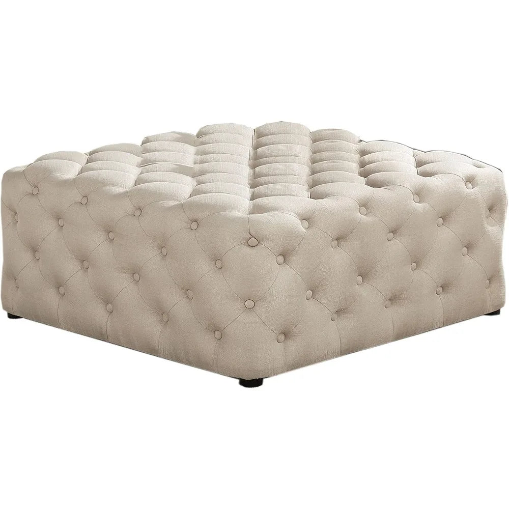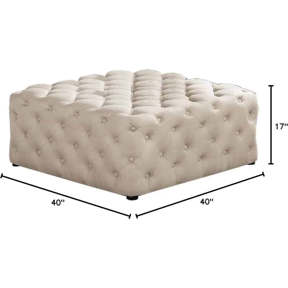 Add comfort and style to any room with the Sherlyn Tufted Square Ottoman. Upholstered in soft beige linen, its elegant, tufted design enhances your space while providing a versatile footstool or extra seating. Compact yet sturdy, this ottoman blends seamlessly with various decor styles, making it a practical and chic addition to your living area.