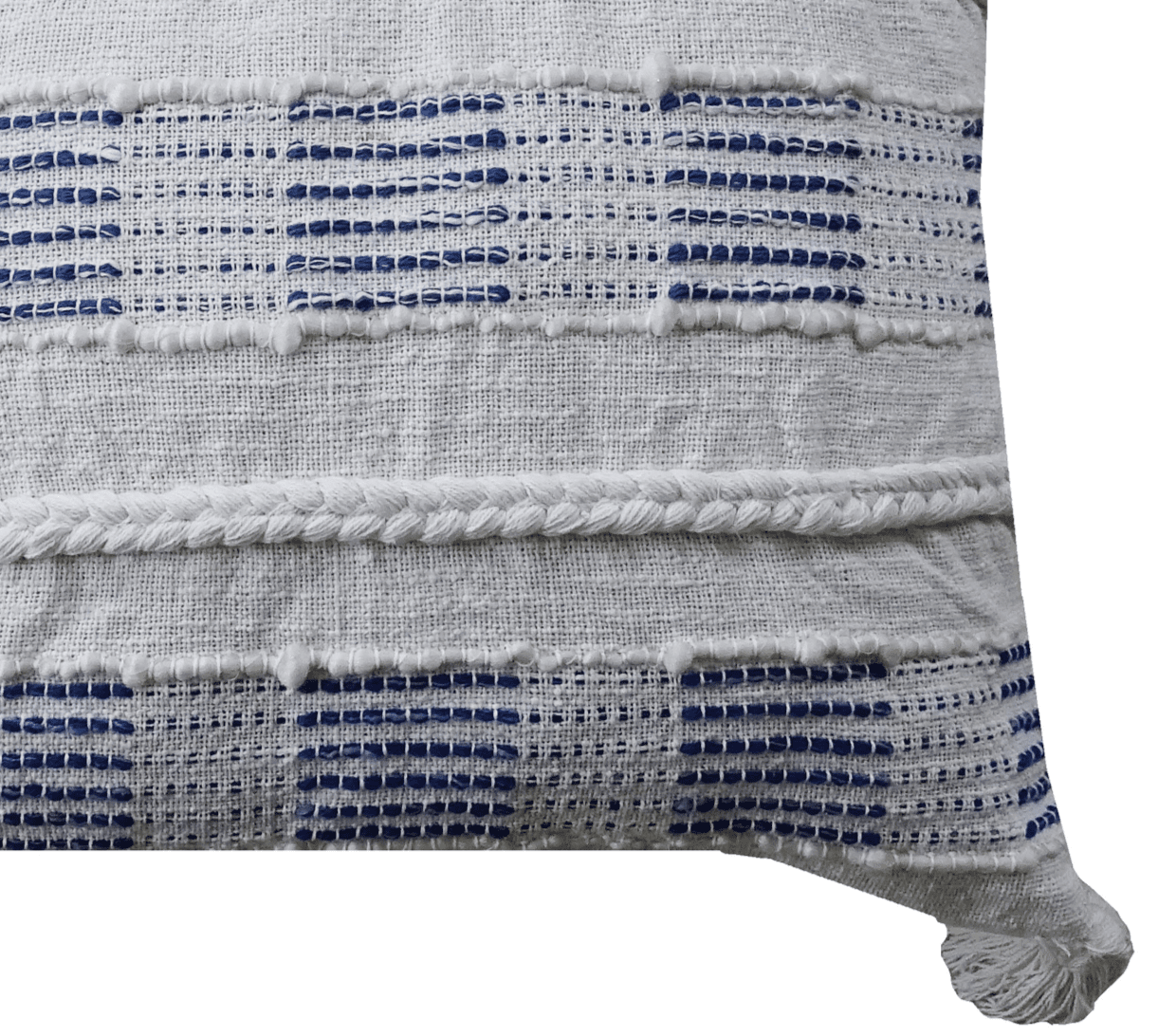 Transform your home into a cozy and bohemian oasis with our 22" Blue & White Tasseled Boho Throw Pillows. Hand woven and embroidered, these pillows add elegance and cohesive contemporary style to your furniture. The soft tassels and high quality insert make for the perfect accent piece on your couch. Designed in the USA and suitable for indoor use only, these pillows are a must-have for any home. Add a touch of charm and comfort with the zippered closure for easy insert removal.