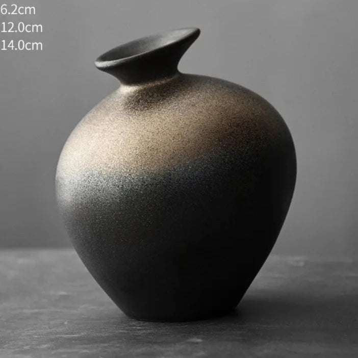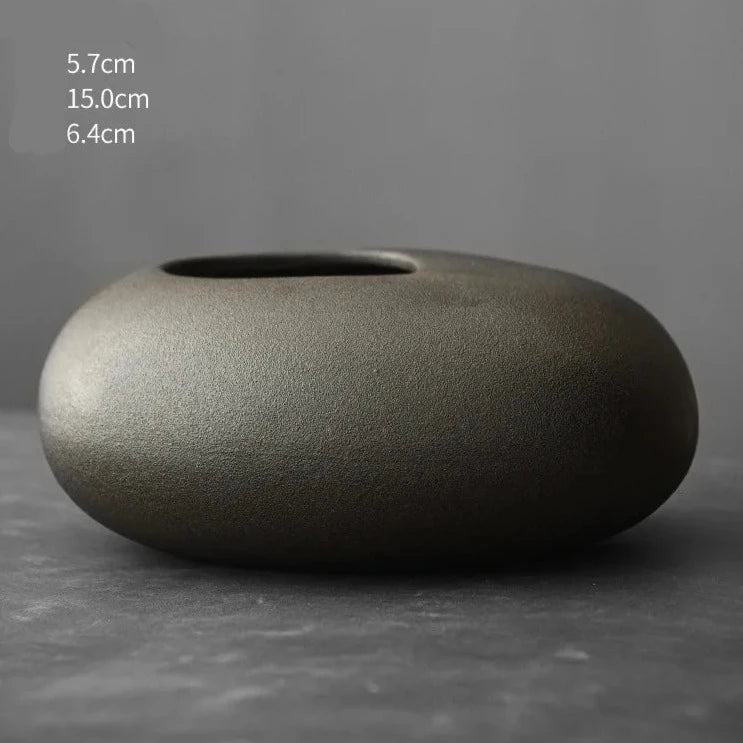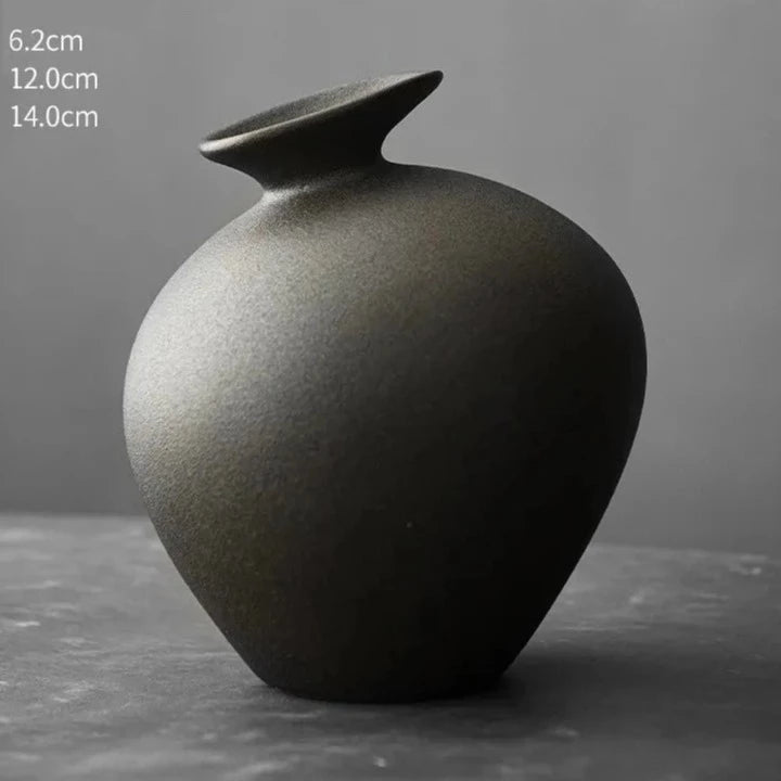Add a touch of sophistication with our Japanese Style Black Terracotta Vase. Made from imitation stone, this abstract pottery will elevate any living room decor. Its aged, brushed design adds a touch of elegance, making it the perfect addition to any table or counter. Enhance your space with these exclusive and timeless vases.
