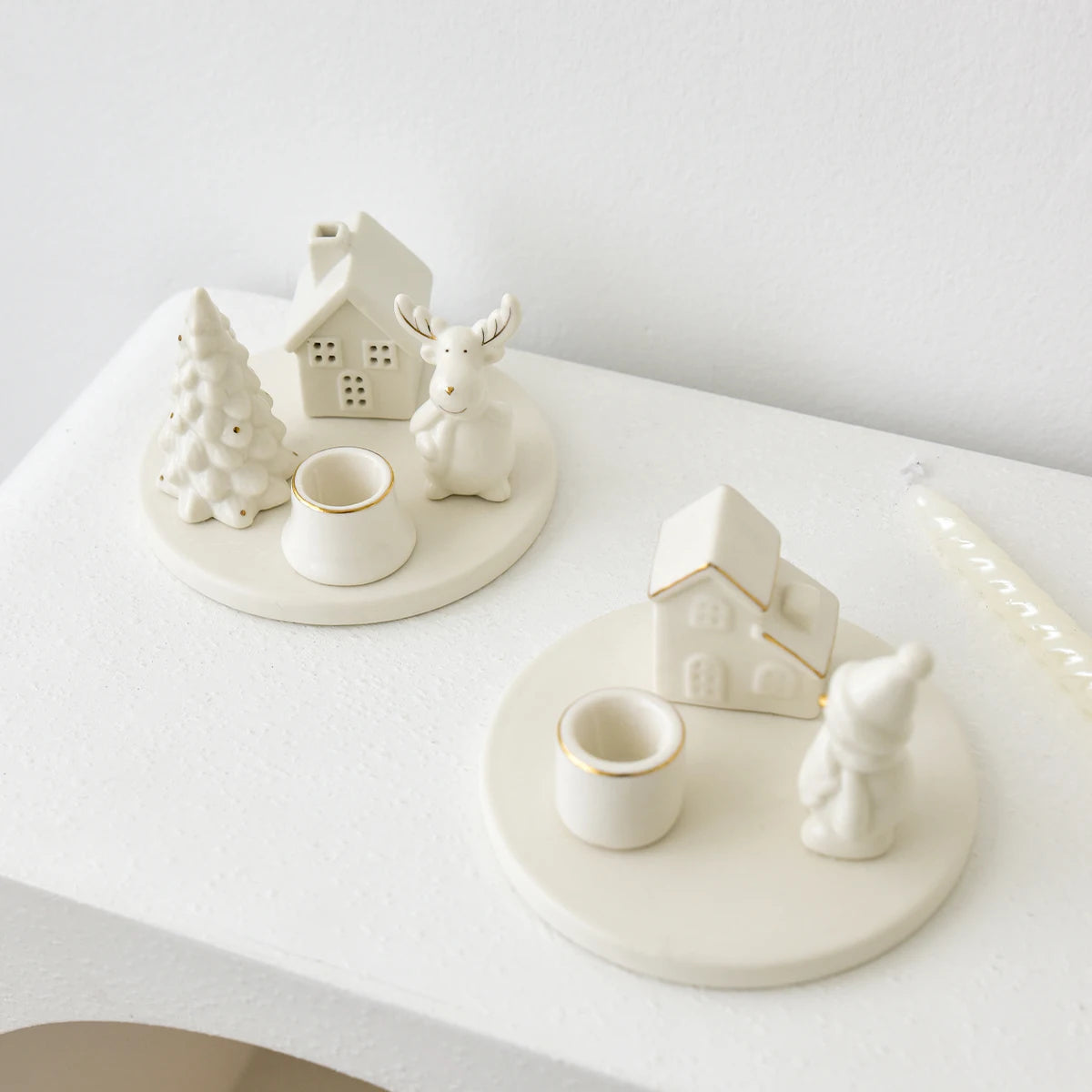 Transform your holiday décor with this charming ceramic reindeer house candlestick. Perfect for Christmas gatherings and festive celebrations, this whimsical piece combines rustic elegance with seasonal spirit. The detailed ceramic craftsmanship brings warmth to any room, while the candlestick design adds ambient lighting to your tablescape or mantel. Whether you're hosting a holiday party or creating a cozy home atmosphere, this versatile ornament captures the magic of the season. A delightful addition that guests will admire and you'll treasure year after year.
