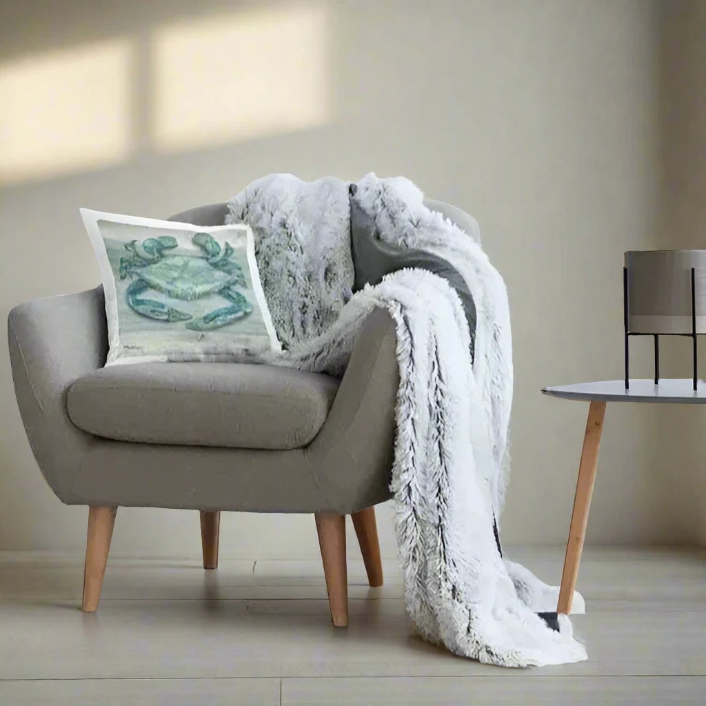 Coastal Nautical Turquoise Blue Crab Image Full Throw Pillow - 18x18