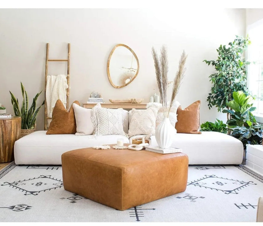 Cognac Tan Leather Hide Square Sequoia Ottoman Table
