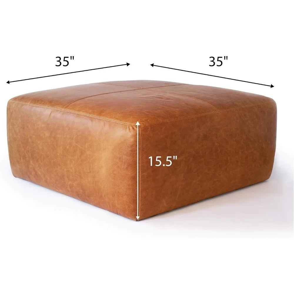 Experience the luxury of full-grain pure-aniline or semi-aniline Italian tanned leather upholstery with POLY & BARK's Sequoia Ottoman in Cognac Tan. This beautiful cognac tan color accentuates the natural beauty of the hide, which will develop a vintage patina over time. Each hide is unique and varies in depth of color, ensuring a one-of-a-kind piece. Feel the comfort of high-density foam and a feather down blend on all surfaces. No assembly required - simply enjoy this exquisite piece in your home.