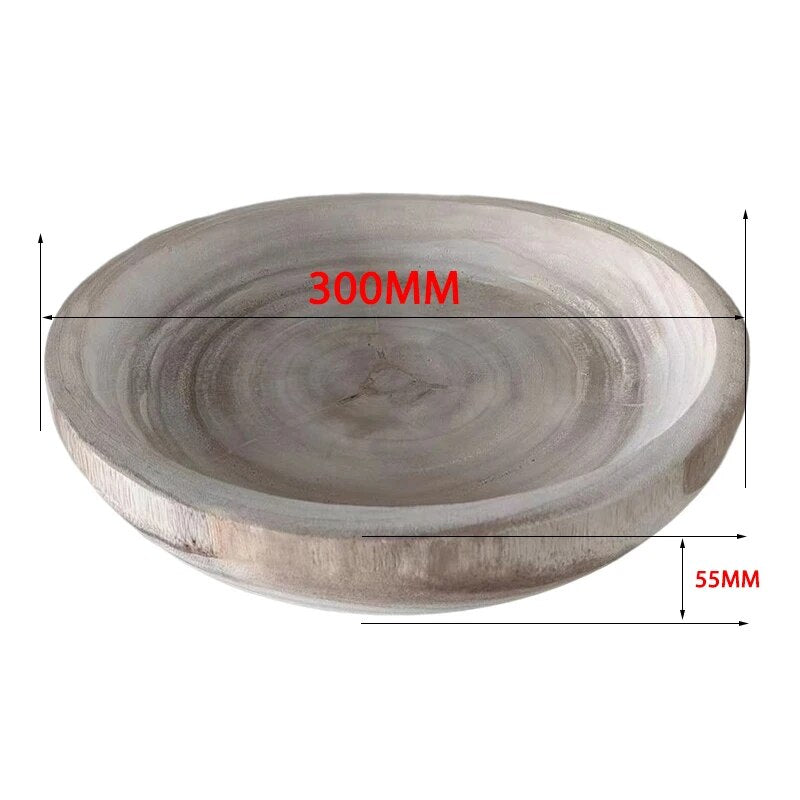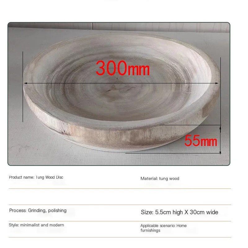 Embrace rustic Scandinavian style with this Dark Aged wood Nordic style large disc tray and bowl. Made from natural tung wood, this tray is perfect for adding a touch of organic charm to your home. It's a perfect centerpiece for your next dinner gathering that's sure to make a statement!