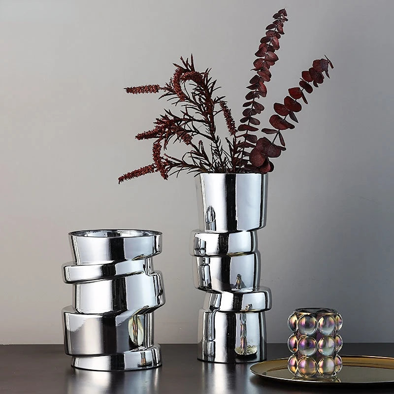 Displaced Stacked Round Silver Glass Geometric Vase