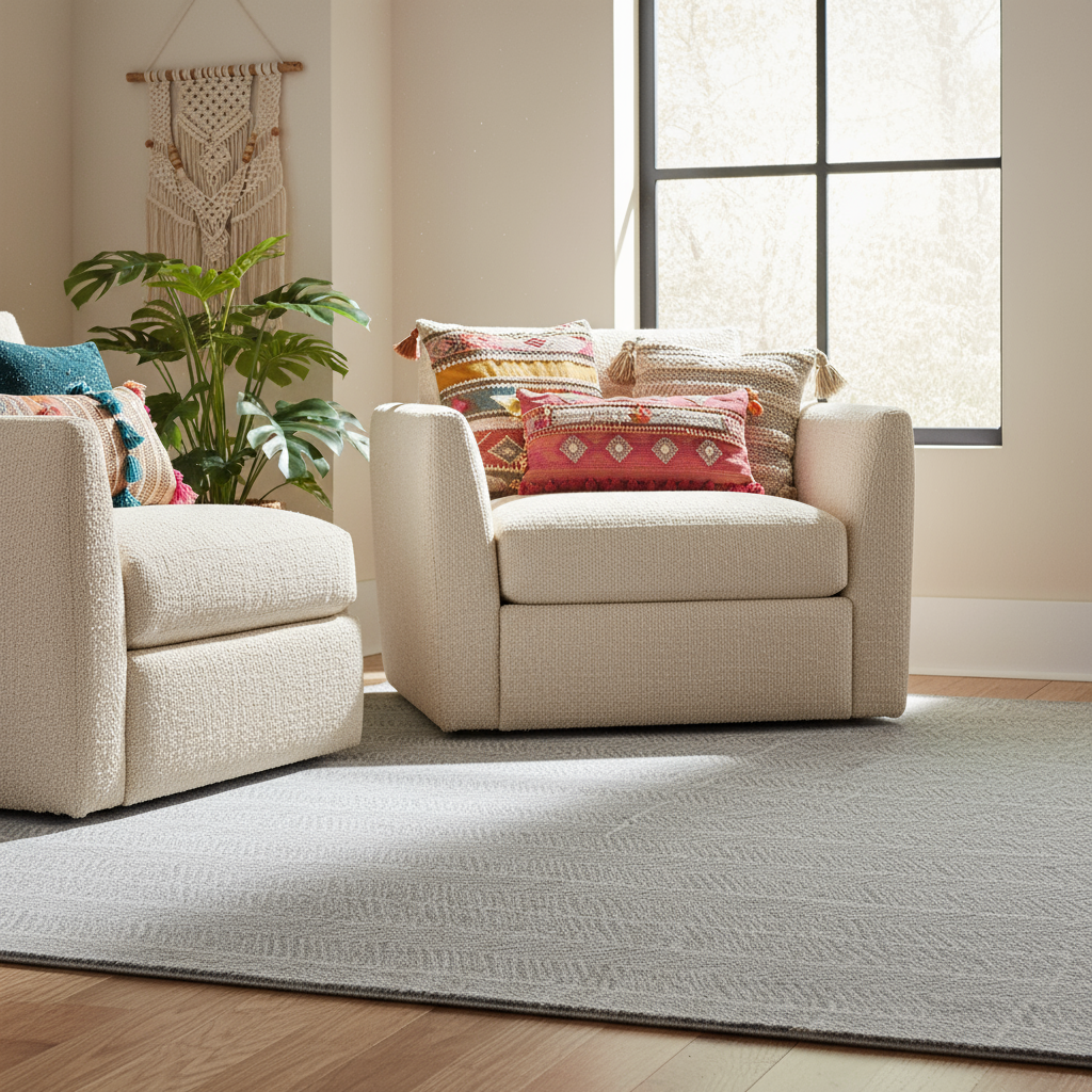 This sophisticated area rug brings global inspiration into your home with its striking grey herringbone and diamond patterns. Handcrafted using sustainable synthetic fibers, it captures the essence of traditional Kilim design while maintaining a contemporary aesthetic. The flatweave construction makes it completely reversible, doubling its lifespan and value. At just 0.19 inches high, it's perfect for high-traffic areas and transitions seamlessly from entryways to living rooms. Built to withstand daily wear, stains, and moisture, this versatile piece works equally well indoors or out. Embrace timeless style with a rug that's as practical as it is beautiful.
