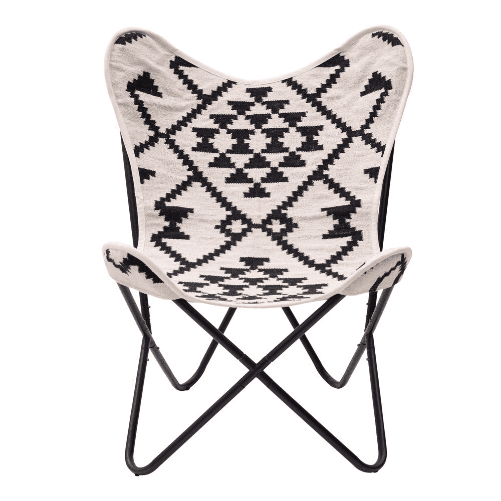 Ethnic Print Rabat Boho Accent Chair Beige & Black