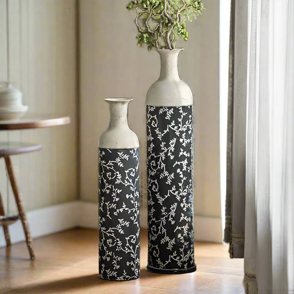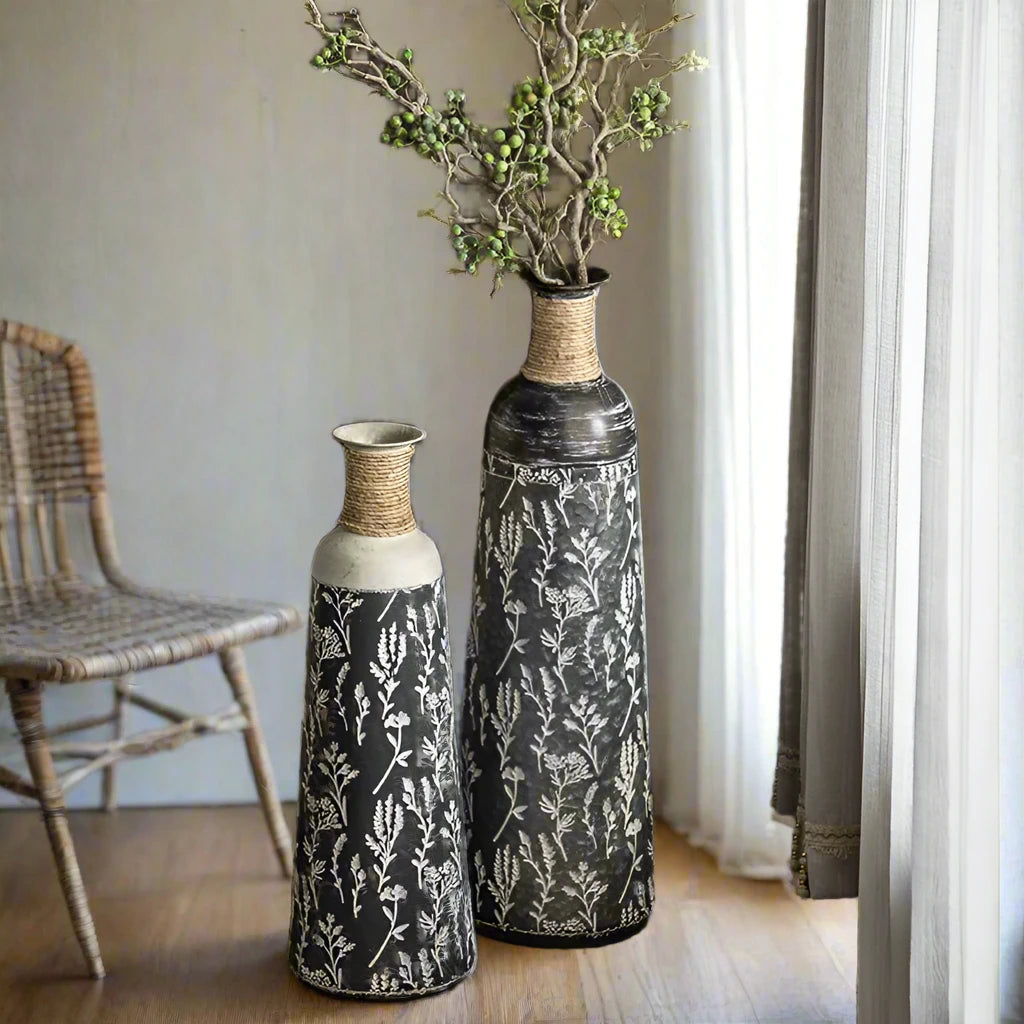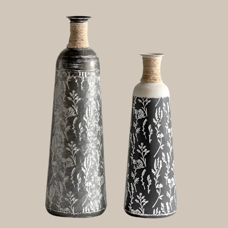 Farmhouse Rustic Etched Iron Floral Pattern Vases