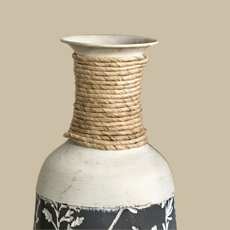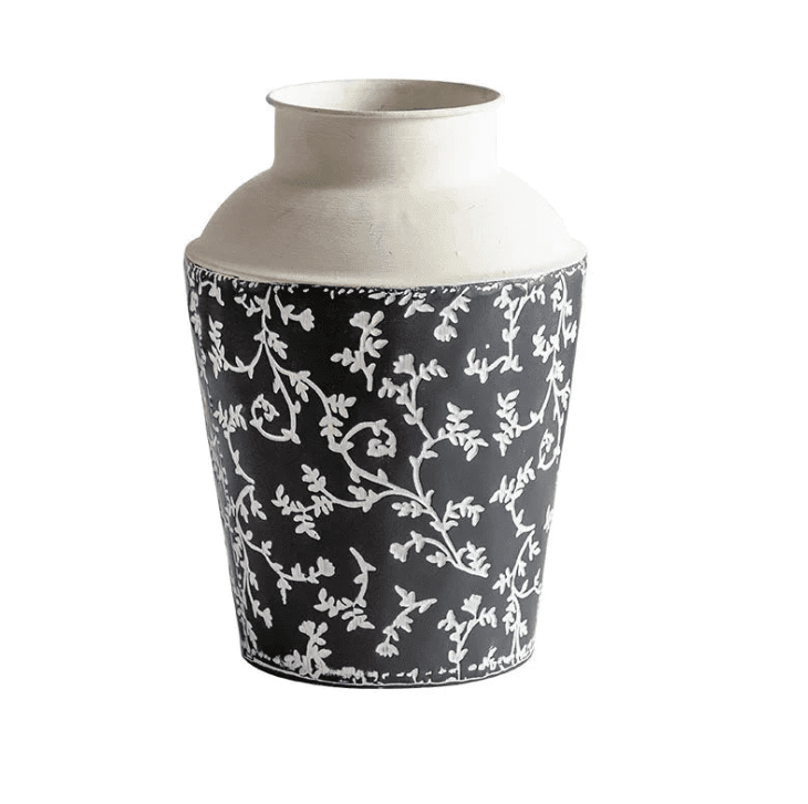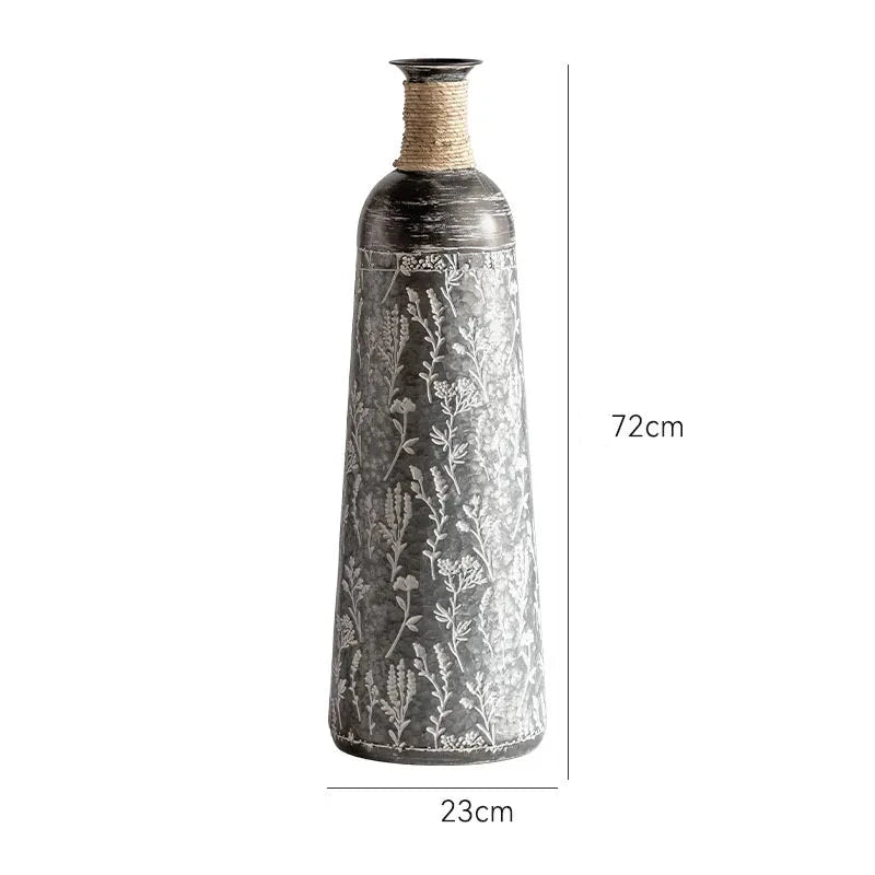 Whether you're looking to add a touch of class to your living room or impress your guests in a hotel foyer, these vases are the perfect choice. Elevate your space with our Farmhouse Rustic Etched Iron Floral Pattern Vases and add a touch of charm to your home.