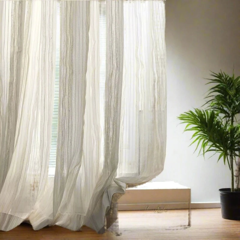 Flowing Sheer White Hemp Cotton Linen Striped Curtains