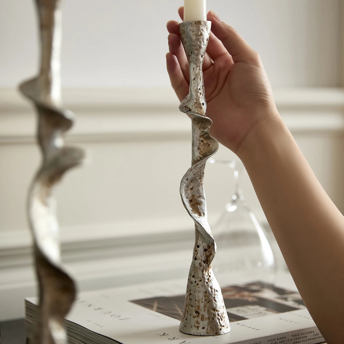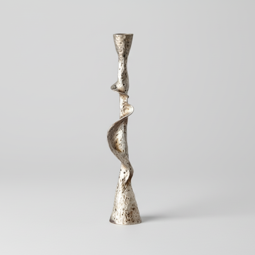 Elevate your space with this stunning freeform aged silver resin candle holder. Its organic, sculptural design brings artistic sophistication to any room, while the weathered silver finish adds timeless elegance and depth. Perfect for creating ambient lighting during intimate gatherings or adding a refined touch to your everyday décor. The unique, handcrafted aesthetic makes it an eye-catching centerpiece that complements both modern and traditional interiors. Transform your home into a sanctuary of style and warmth with this versatile decorative essential.