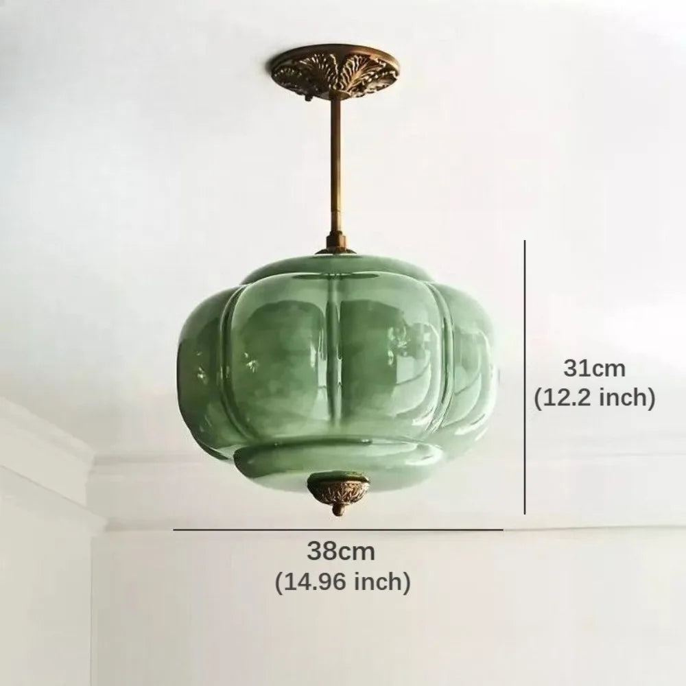 Retro Green Round Glass Chandelier French Nordic Luxury Glass Pendant Lamp Minimalist Homestay Home Decor Dimming Hanging Lights
