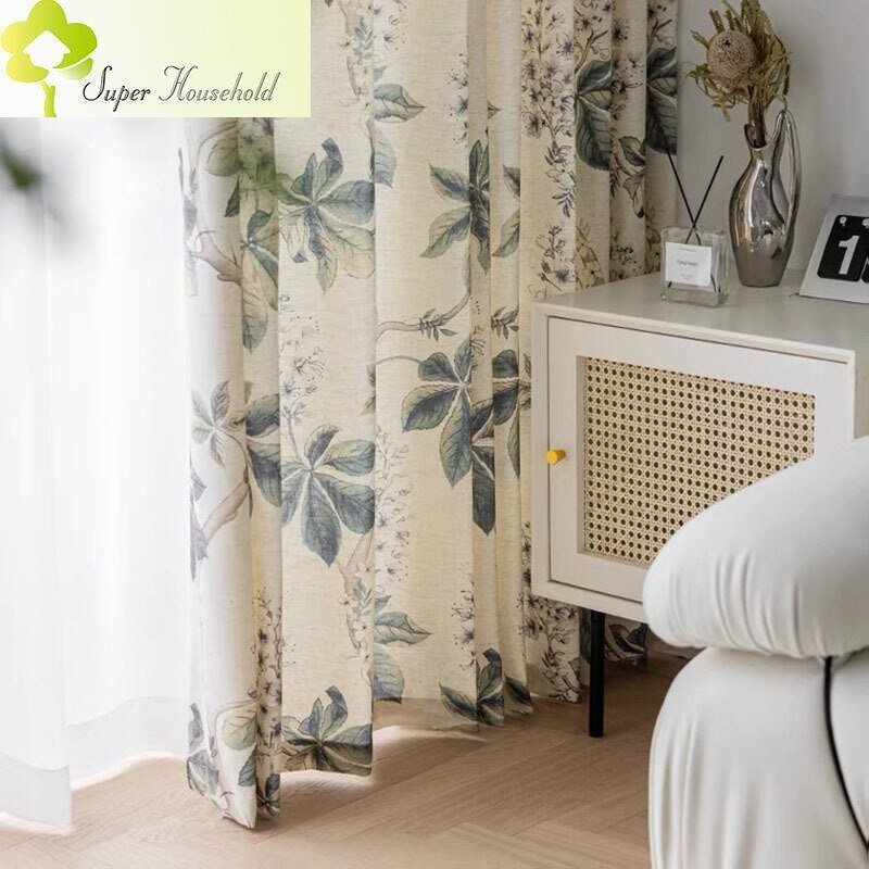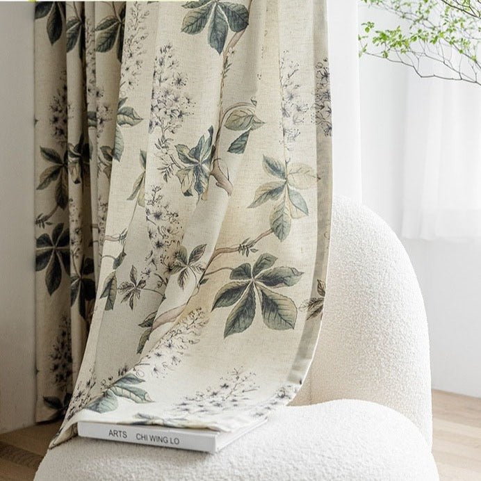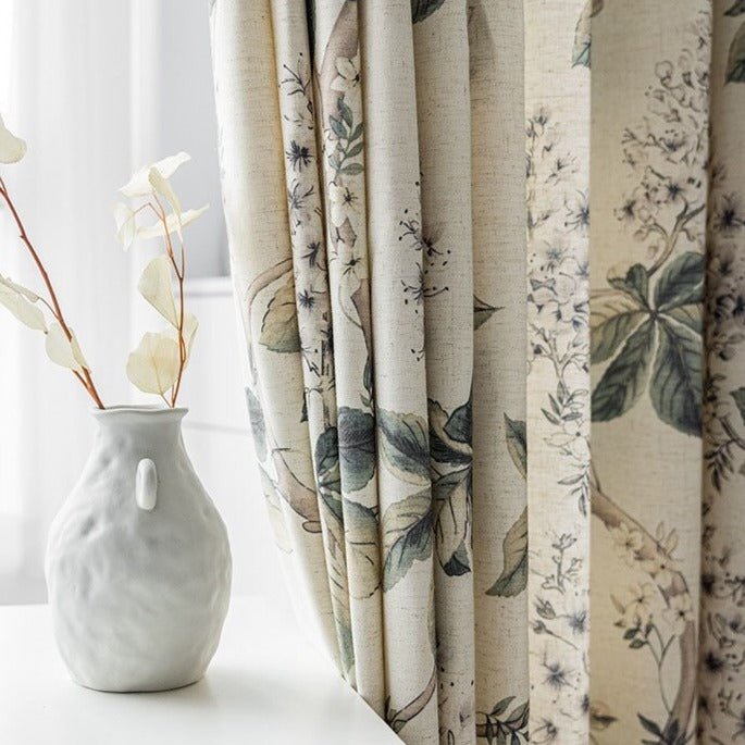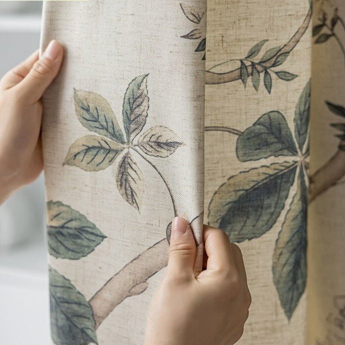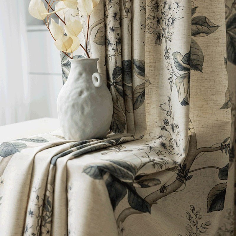 Garden Print Blackout Heavy Fabric Cotton Linen Curtains