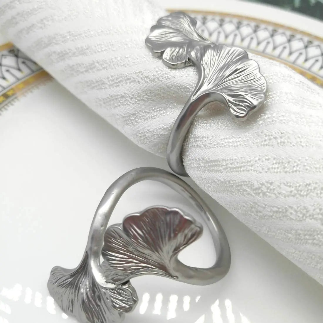 Ginkgo Leaf Rose Gold Silver Handmade Metal Napkin Ring Buckles