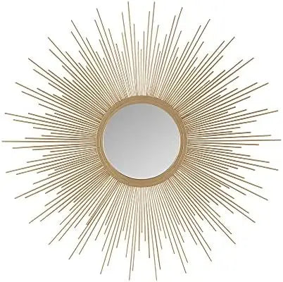 Gold Tone Iron Metal Large Sunburst Wall Art Mirror