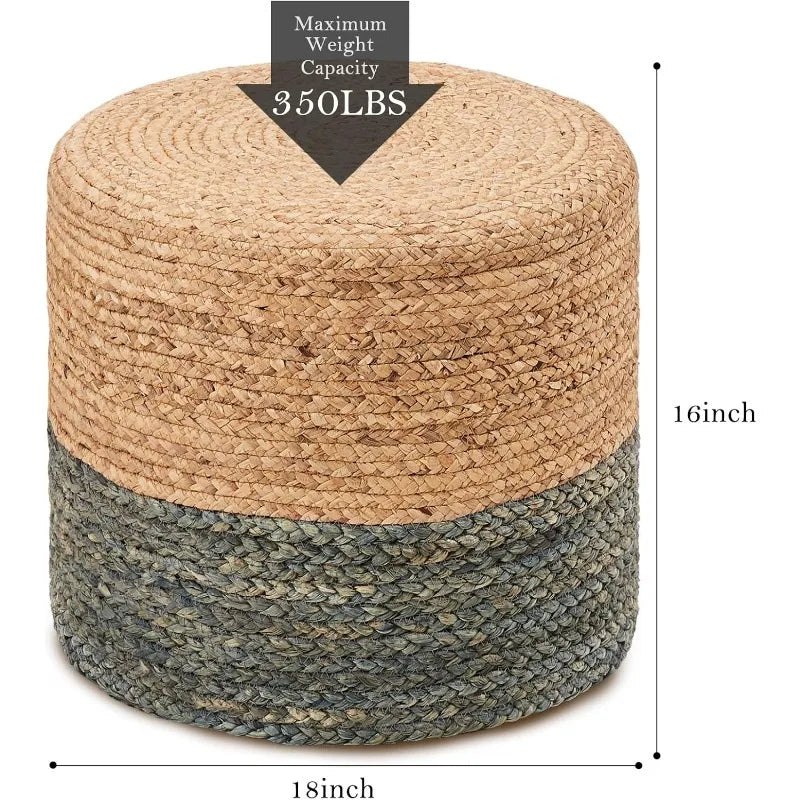 This 18" handwoven jute ottoman pouf adds rustic style and comfort to any room. Use it as a footrest, extra seat, or side table. Lightweight and durable, it supports up to 350 pounds and features a padded seat for added comfort. Its natural jute fibers suit farmhouse, boho, and coastal décor. Easy to clean and versatile, it’s perfect for indoors or outdoors.