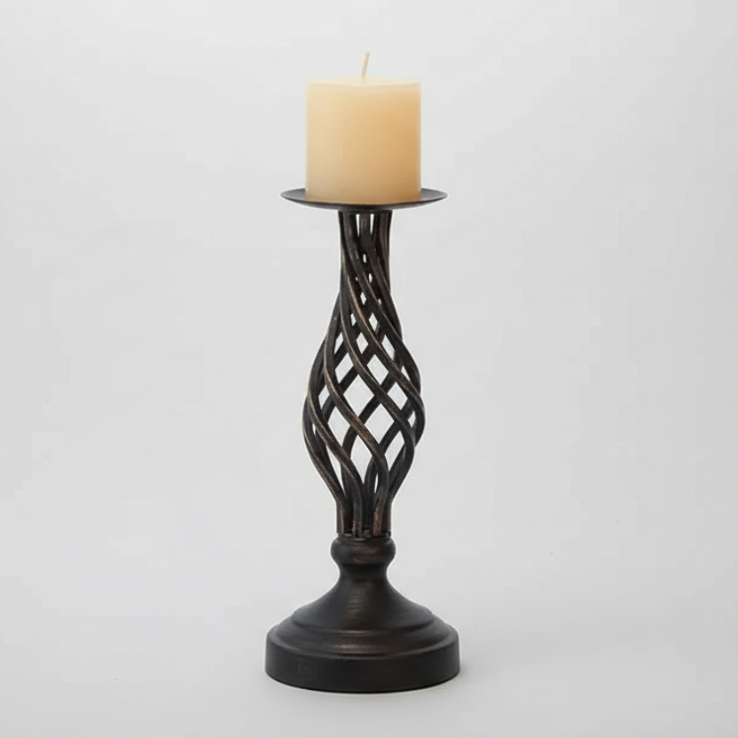 Intricate Iron Pillar Candle Holder