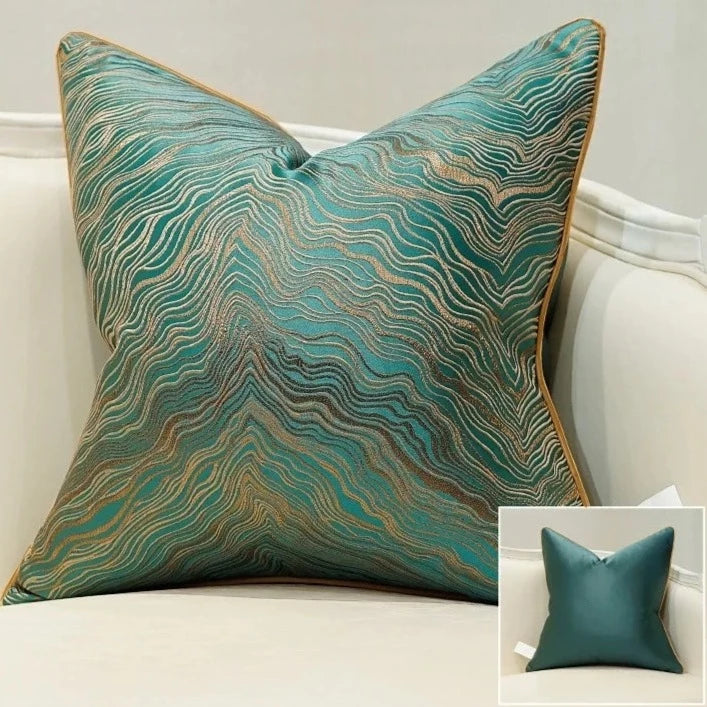 Jacquard Embroidered Gold Wave Throw Pillow Covers
