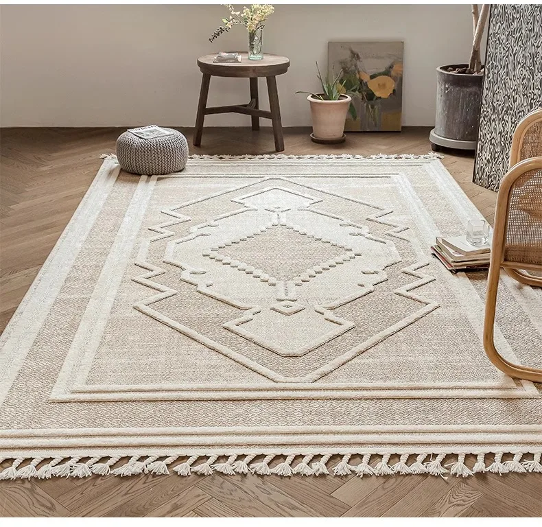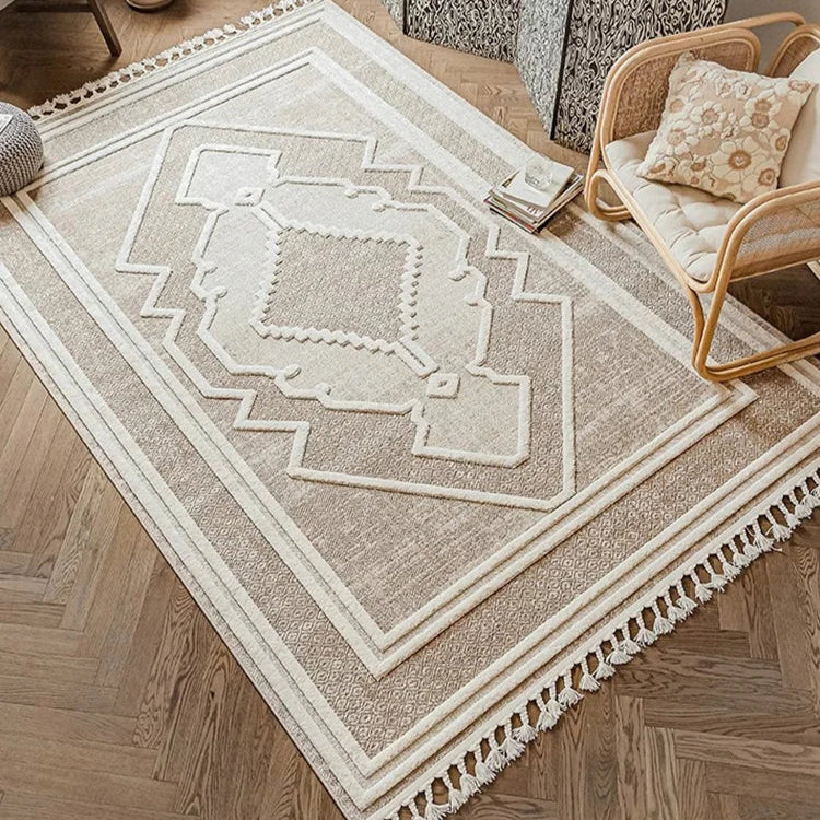 Transform your home with the Large Beige Moroccan Tassel Light Area Rug, blending soft neutral hues and detailed tassels to add warmth and texture. This rug creates a cozy, elegant base that suits any room and complements diverse decor styles. Designed with a French retro flair, it features a non-slip, soft surface made from durable polypropylene and polyester. With a 1cm thickness and breathable, anti-skid cotton backing, it protects your floors while offering lasting comfort. Its vibrant colors and simple geometric pattern resist fading and pilling. Easy to clean and built to last, this rug is moisture-proof, anti-static, wear-resistant, and an excellent value for stylish, functional living spaces.