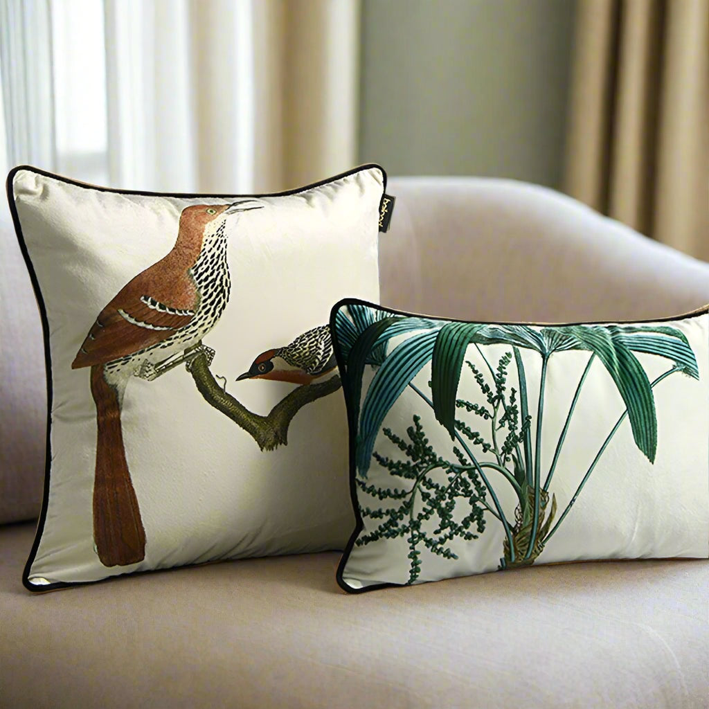 Magpie Bird & Branch Print Velvet Throw Pillow Covers