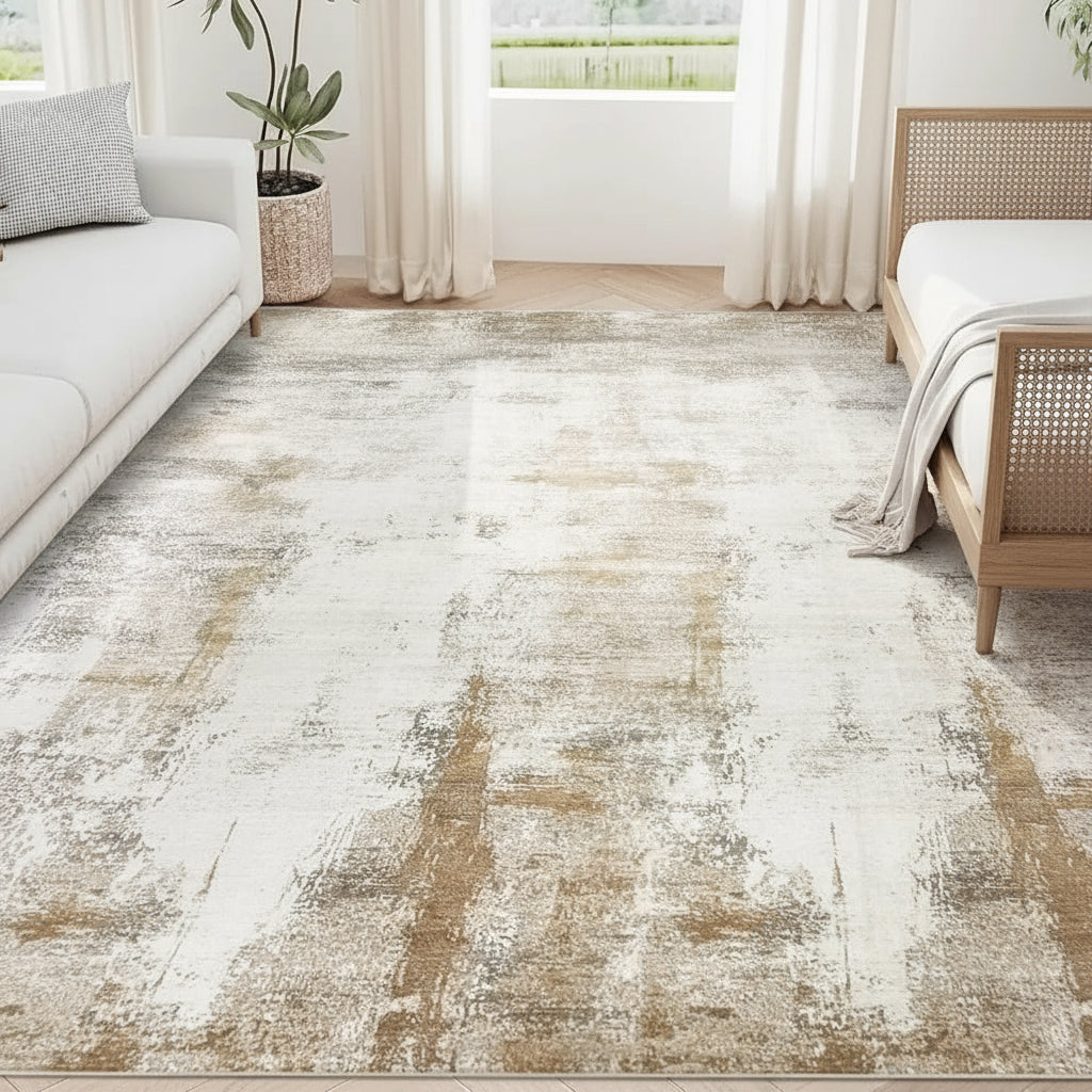 Neutral Beige & Camel Low Pile Modern Area Rug
